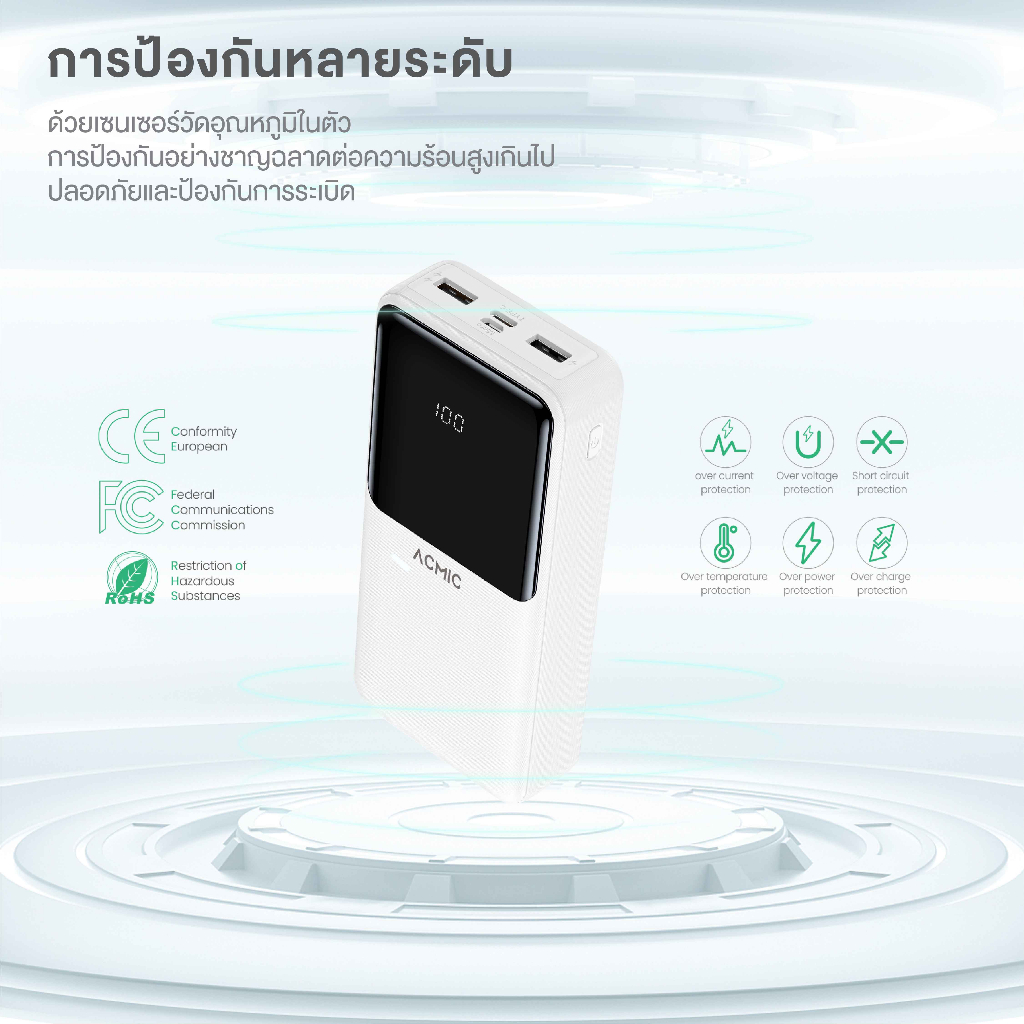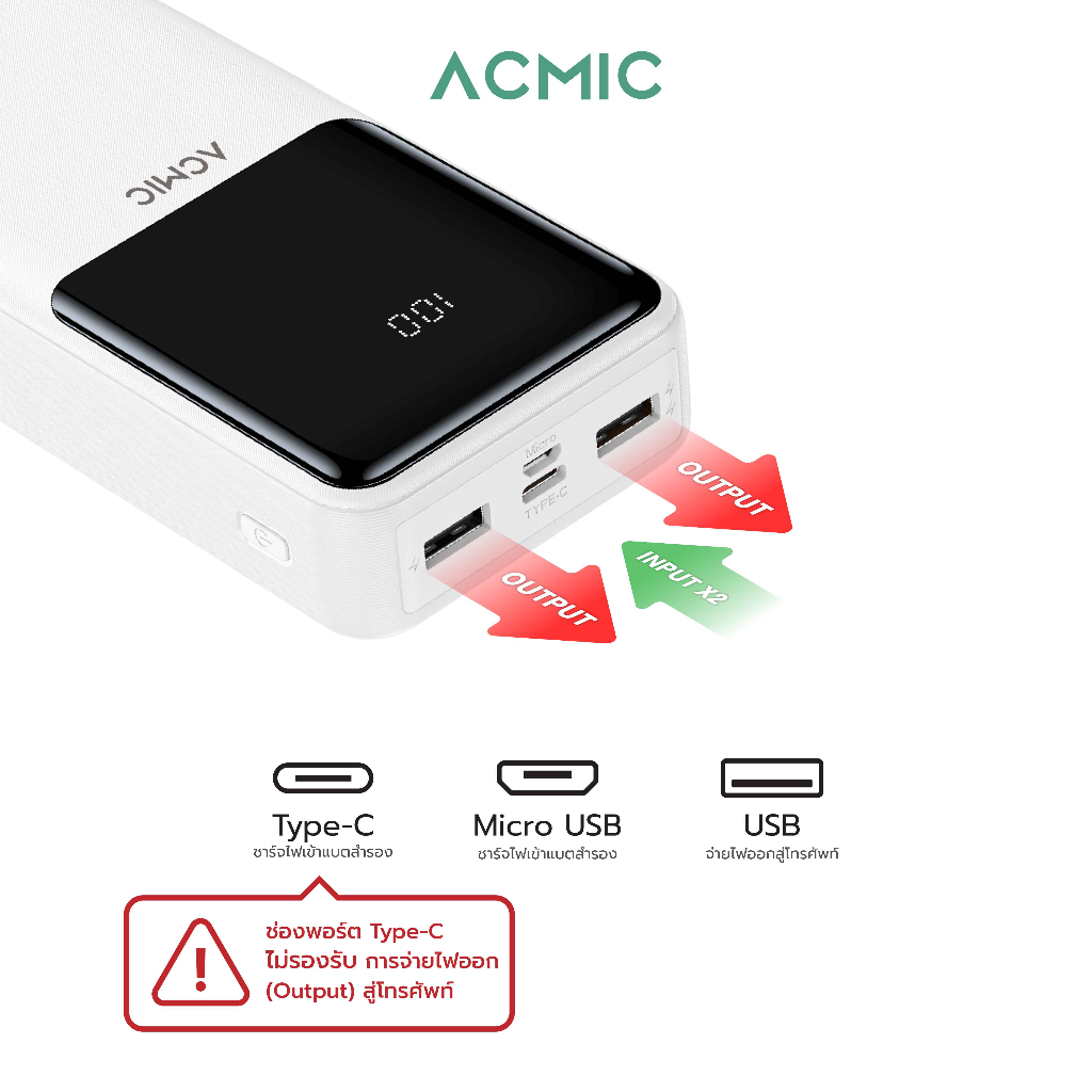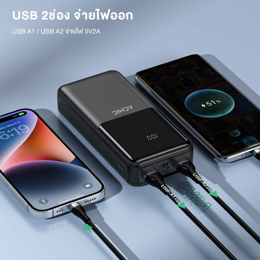 ACMIC AP20-07 PRO Powerbank 20000mAh พาวเวอร์แบงค์ หน้าจอแสดงผล LED ช่อง USB จ่ายไฟ 2.1 ประกัน 1 ปี