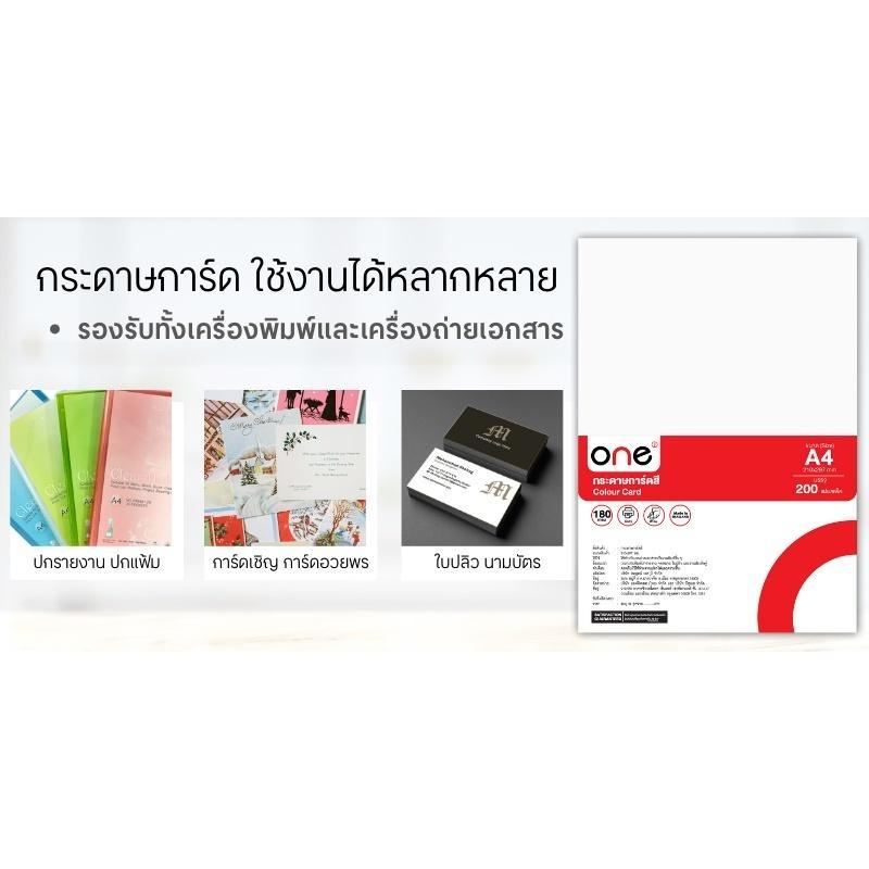 ONE กระดาษการ์ดสี A4 180 แกรม สีขาว แพ็ค 200 แผ่น