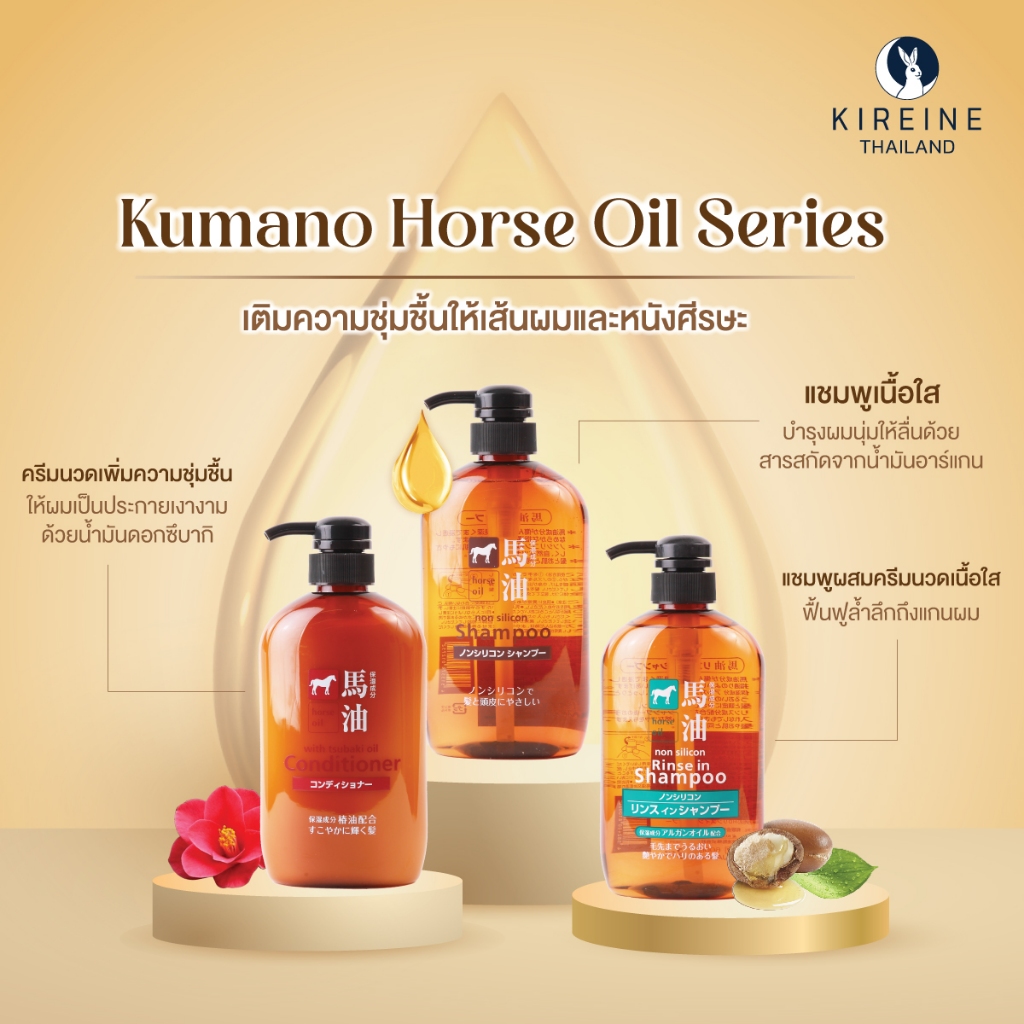 คุมาโนะ ฮอร์ส ออยล์ วิท ซึบากิ์ ครีมนวด 600มล. Kumano Horse Oil With Tubaki Conditioner 600ML ครีมนวดผม