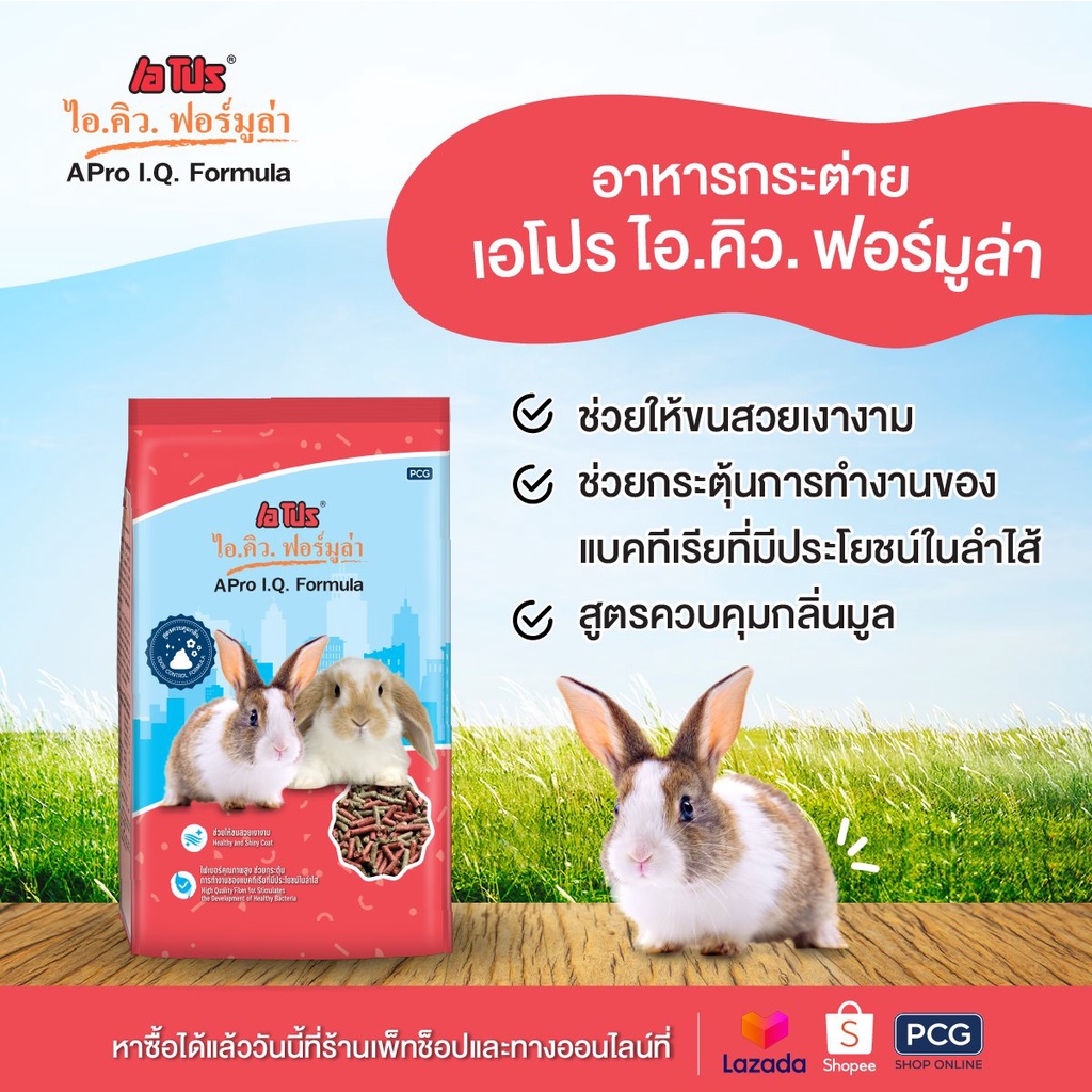 อาหารกระต่าย Apro เอ โปร ไอ.คิว ฟอร์มูล่า เป็นอาหารกระต่ายสำเร็จรูปชนิดเม็ด 1 กก.
