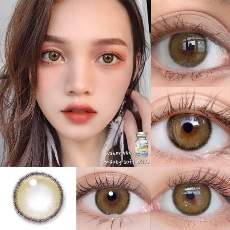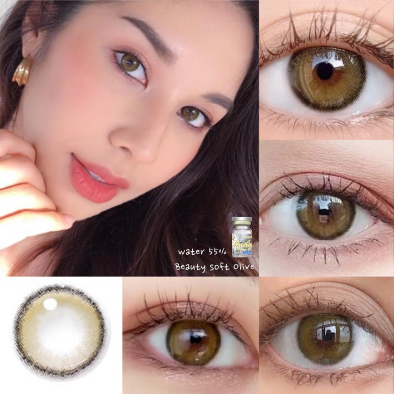 Beautylens บิวตี้คอนแทคเลนส์ รุ่น บิวตี้ซอฟ สีโอลีฟ Beauty soft olive ค่าอมน้ำ55%