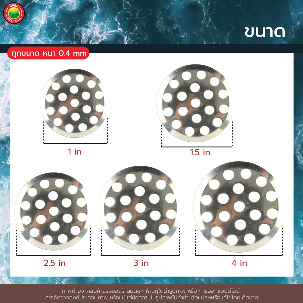 ตะแกรงท่อน้ำทิ้ง กันกลิ่น ขนาด 1.5, 2, 2.5, 3, 4นิ้ว สแตนเลส DRAIN GRATE รูกลม ที่กรอง ตะแกรง ฝา ท่อ น้ำทิ้ง ตะแกง มิตสห