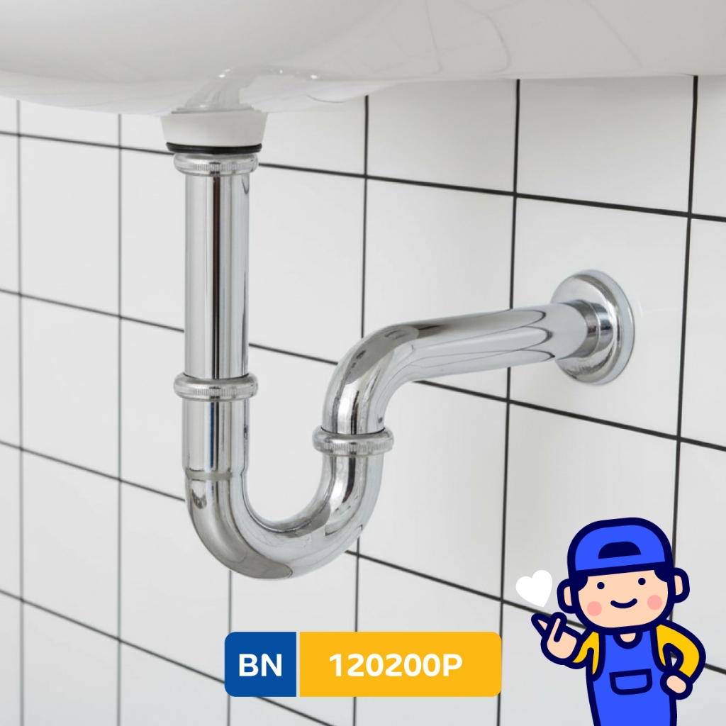 BEN 120200P ท่อน้ำทิ้งคอห่าน ท่อเข้ากำแพงยาว 20 ซม. BEN และป้องกันกลิ่นไม่พึงประสงค์ต่าง ๆ ได้ดีกว่า สแตนเลสสีโครเมียม