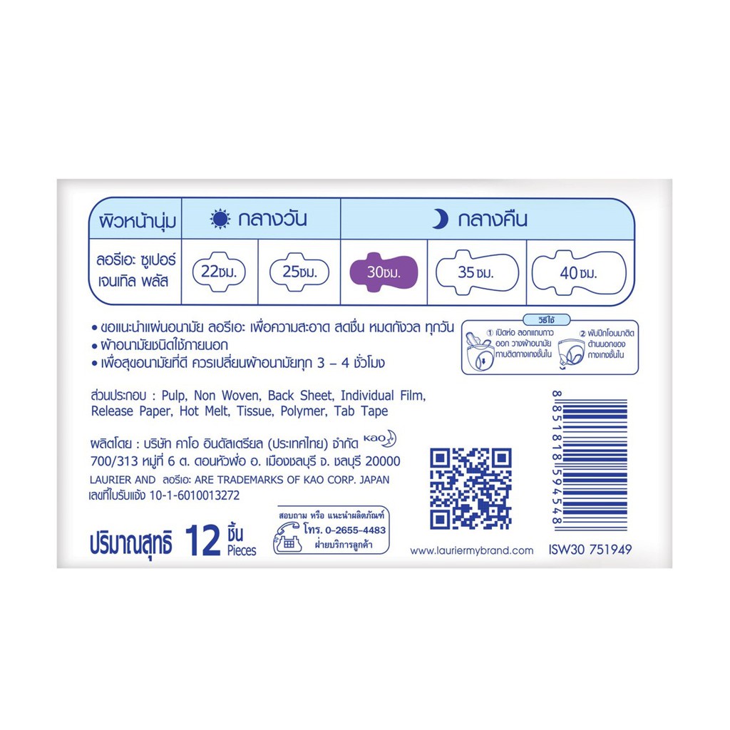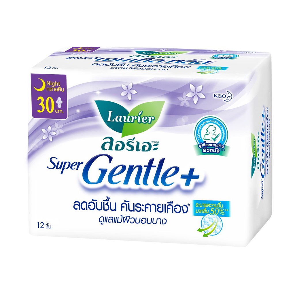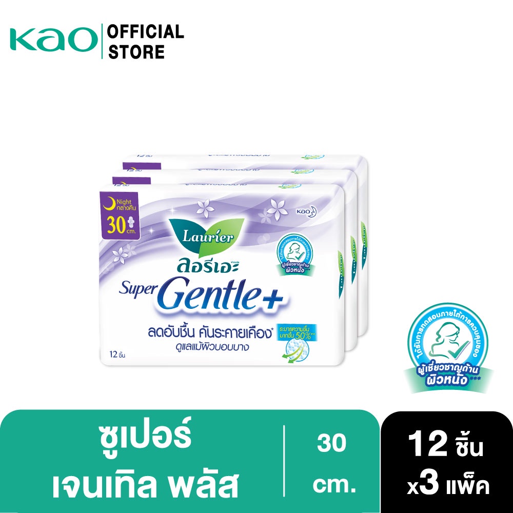 [แพ็ค3] ลอรีเอะ ซูเปอร์เจนเทิลพลัส กลางคืน30ซม.12ชิ้น Laurier Super Gentle+30cm.12pcs ผ้าอนามัย,ผิวแพ้ง่าย