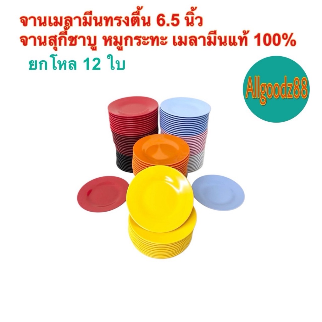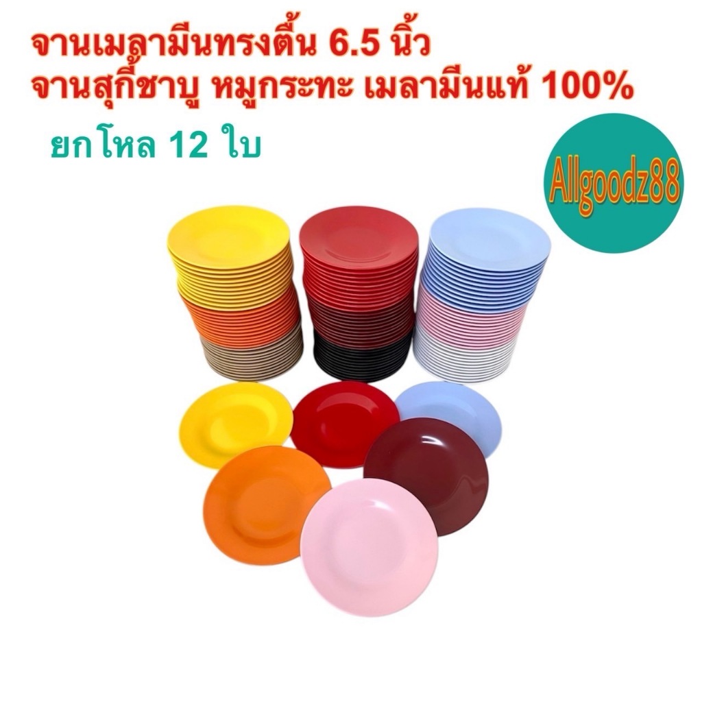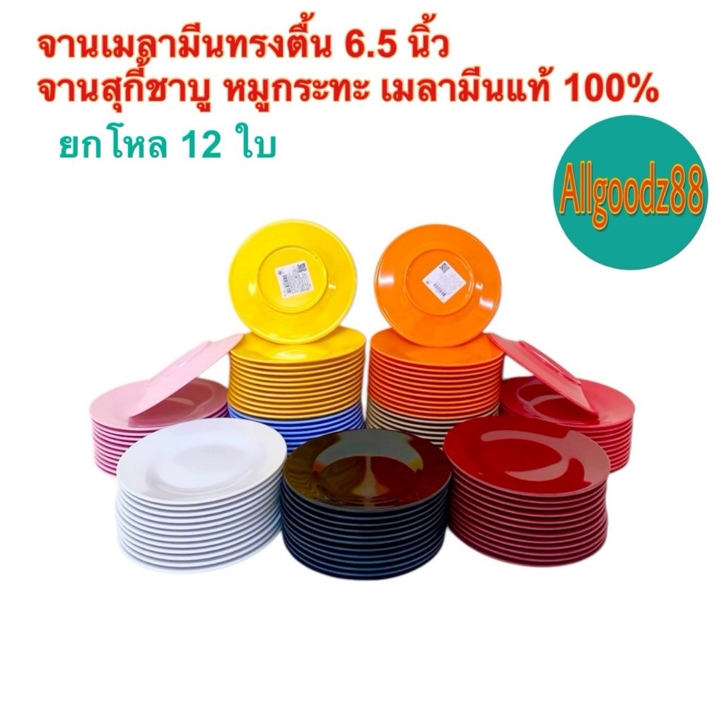 จานเมลามีนทรงตื้น 6.5" จานสุกี้ชาบู หมูกระทะ เมลามีนแท้ 100% ยกโหล 12 ใบ*สามารถออกใบกำกับภาษีได้ค่ะ