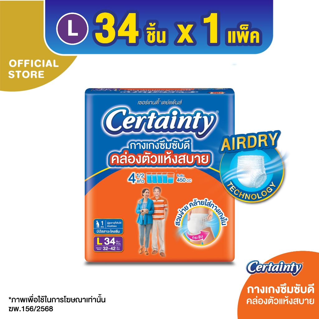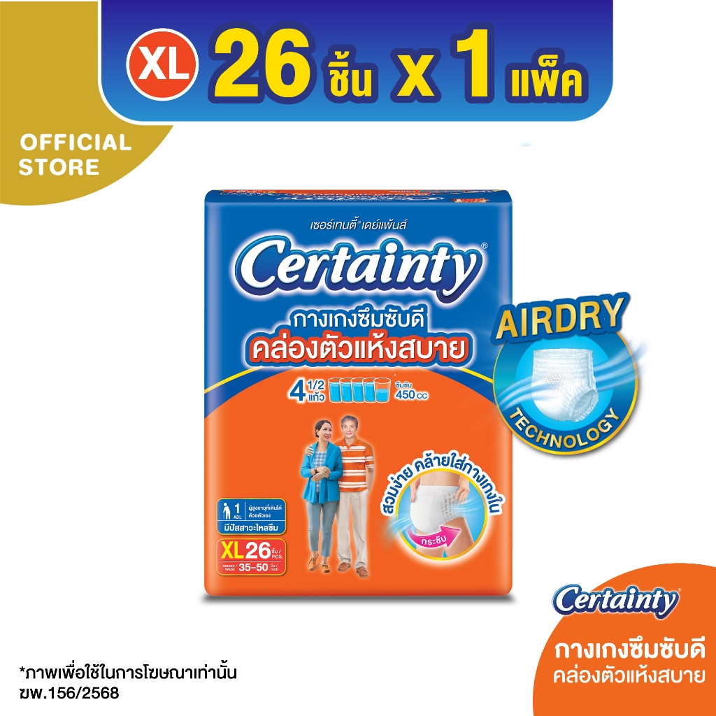 Certainty Daypants กางเกงผ้าอ้อม เซอร์เทนตี้ เดย์แพ้นส์ ขนาดจัมโบ้ ไซส์ M, L, XL