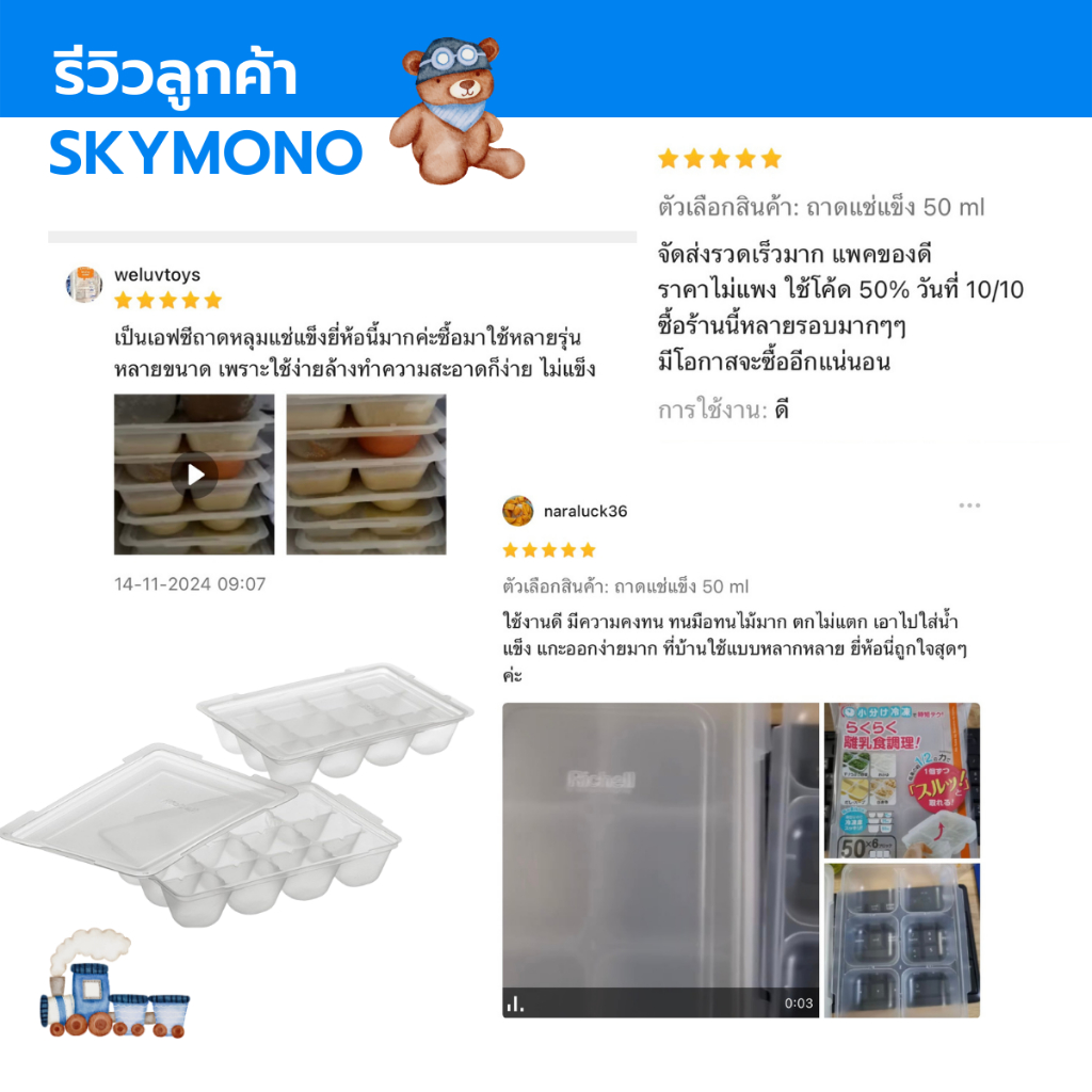กล่องเก็บอาหารเด็ก แช่แข็ง อาหารเด็ก Richell ไมโครเวฟได้ นึ่งได้ BPAfree (1แพค2ถาด)