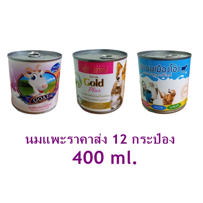 12 กระป๋อง นมแพะ สเตอริไลส์ สุนัข แมว สัตว์เลี้ยง 400ml
