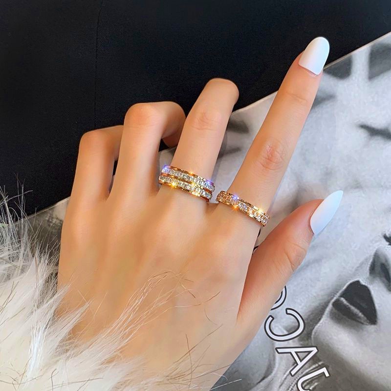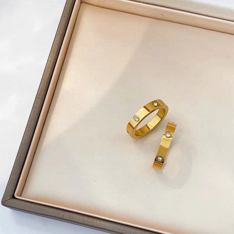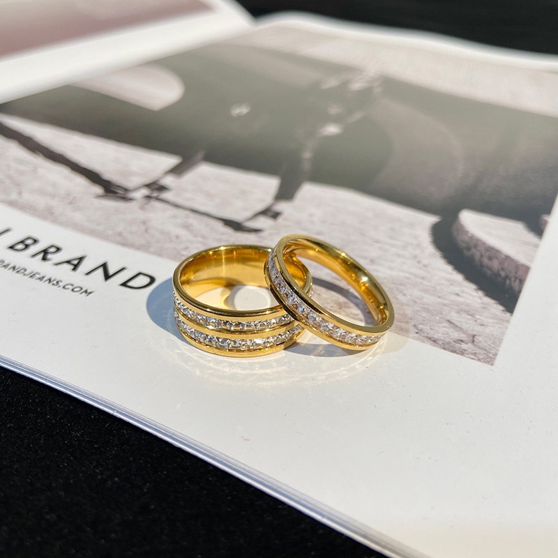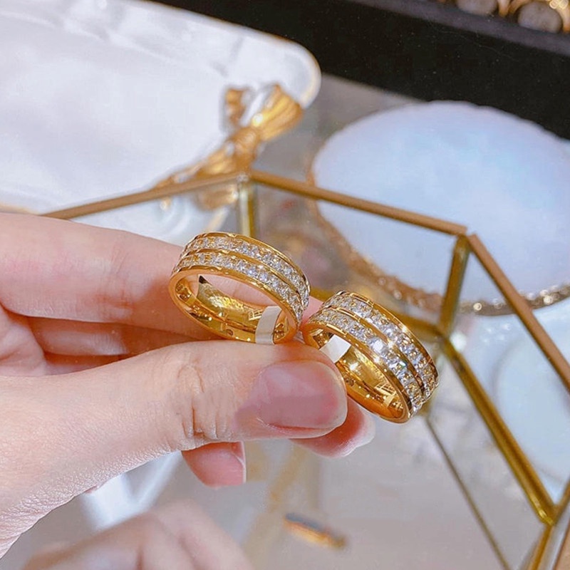 OYJR แหวนเพชรสแตนเลส ประดับเพชรหกเหลี่ยม สีทอง สำหรับผู้หญิง