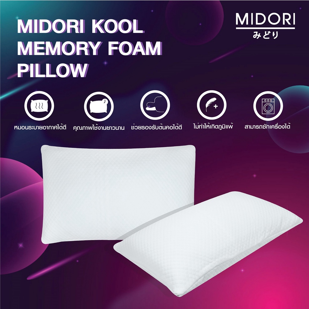 MIDORI Home หมอนโรงแรม 6 ดาว หมอนMEMORY FOAM เปลือกหมอน Cotton 100% ไม่ก่อให้เกิดภูมิแพ้