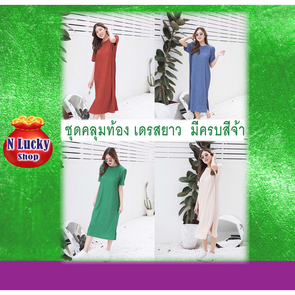 เดรสยาว ชุดคลุมท้อง เดรส เดรสยาว สาวอวบแขนสั้น ผ้ายืด สาวอวบใส่สวยจ้า ก่อนยืด40นิ้ว ยืดได้ถึง48นิ้ว ยาว42นิ้ว