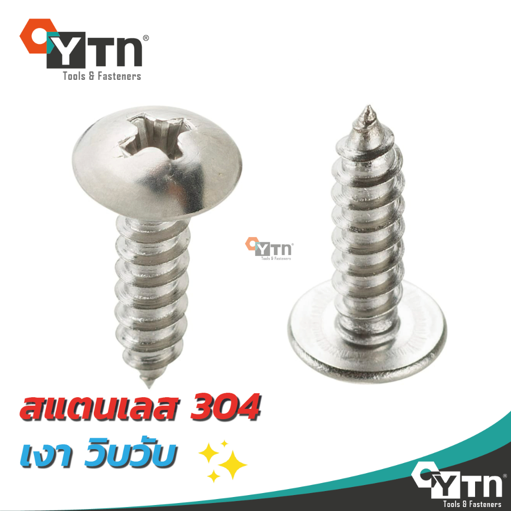 [10ตัว] สกรูเกลียวปล่อย JT+ หัวร่ม สแตนเลส | ขนาด M6