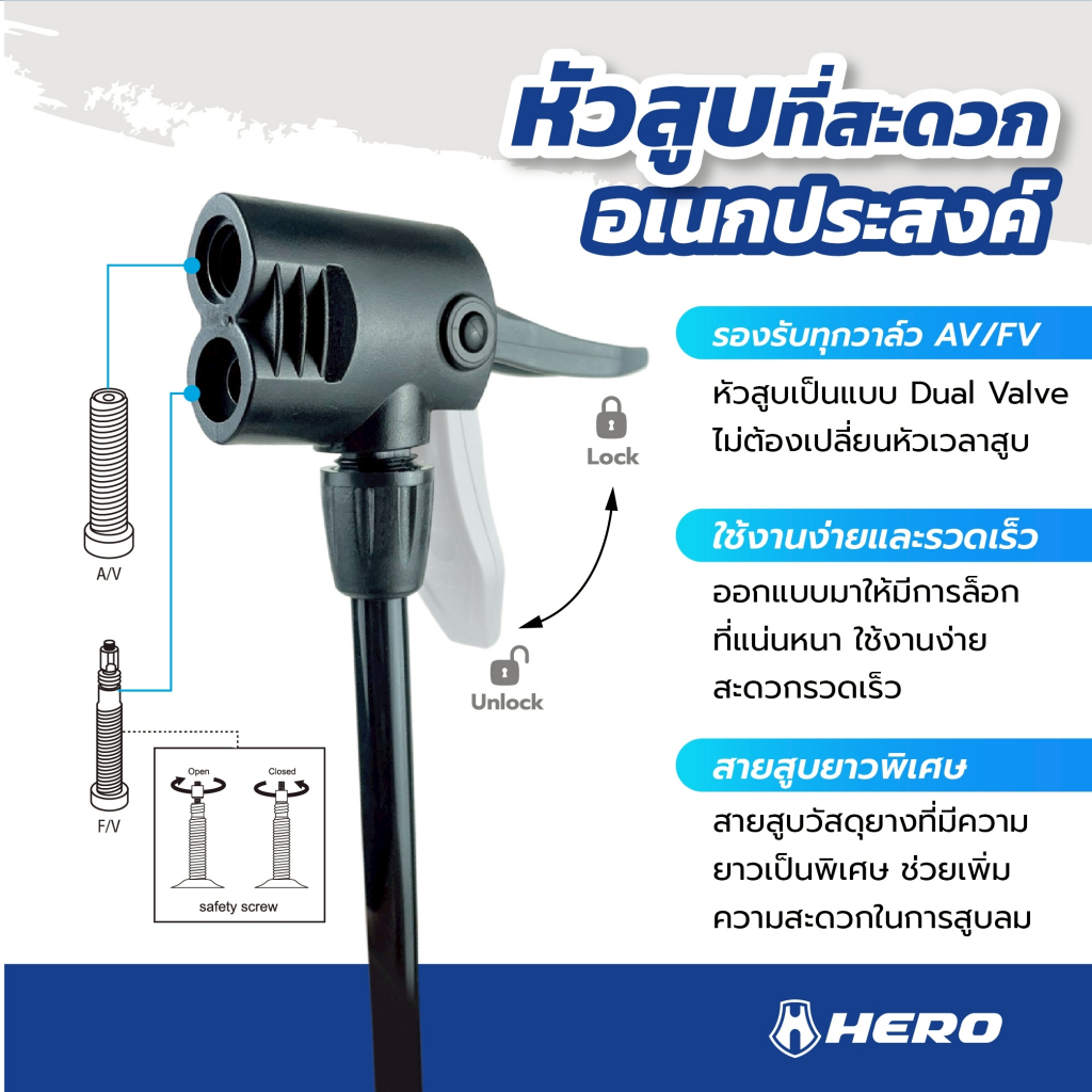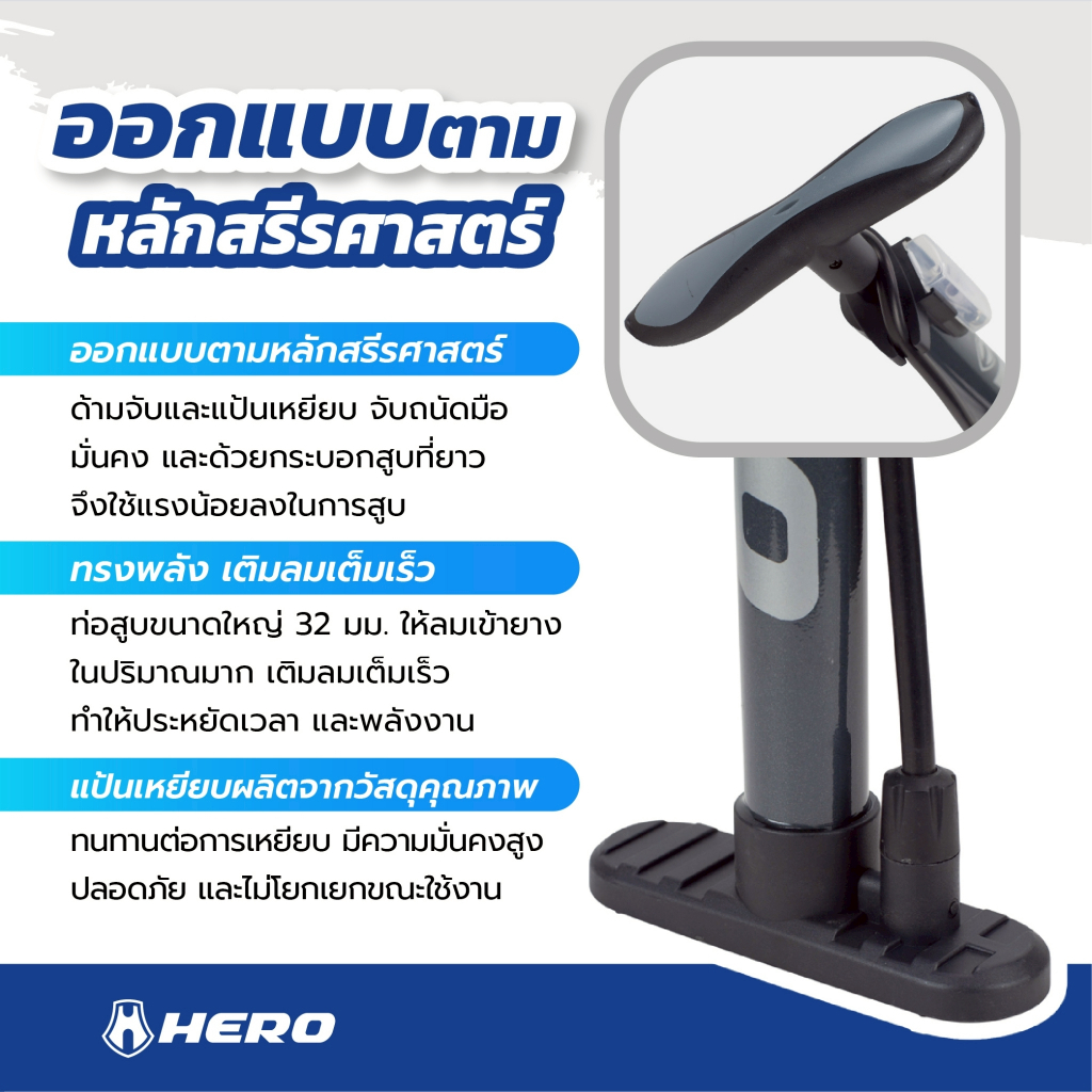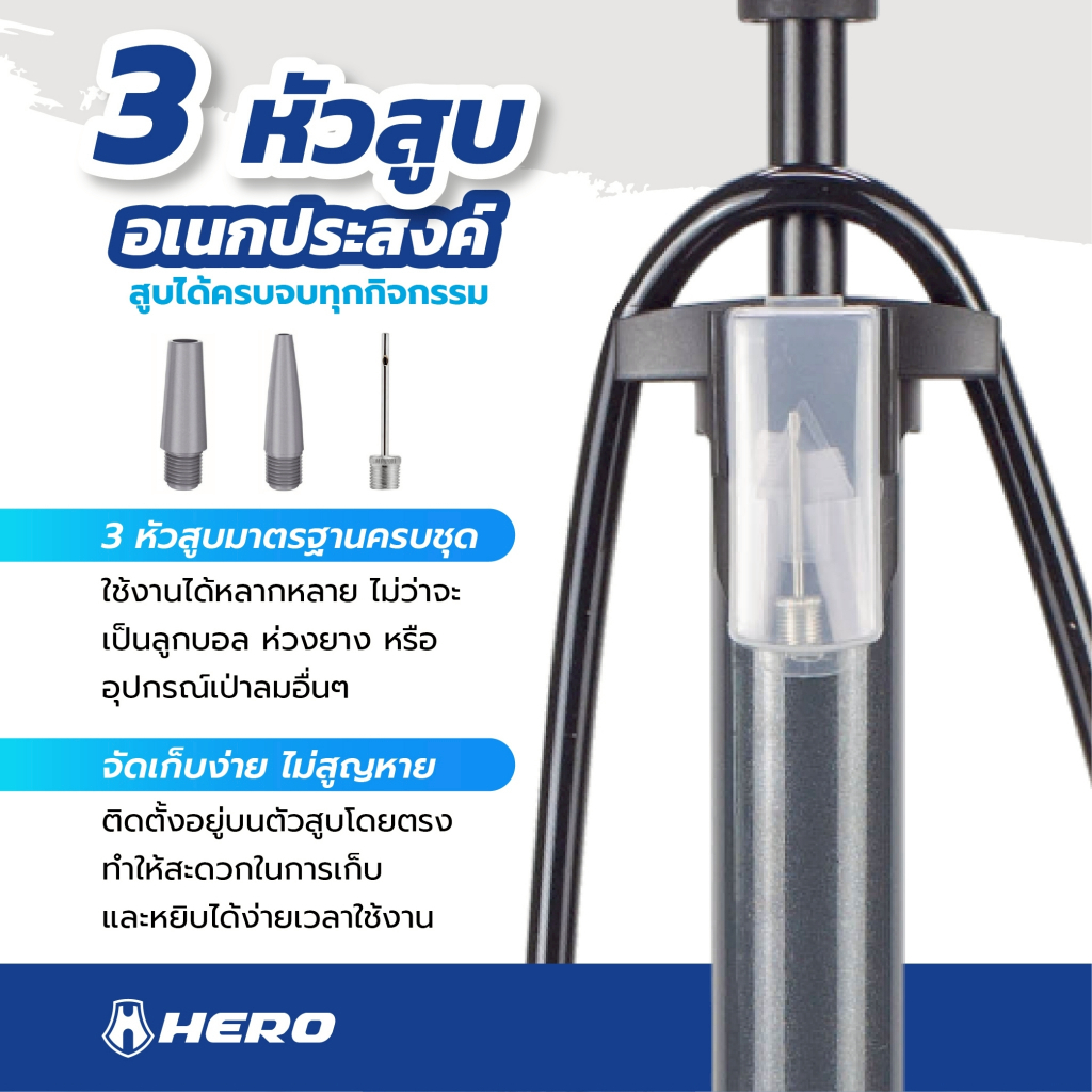 ที่สูบลม Hero นำ้หนักเบา ใช้แรงน้อย ลมเต็มได้ไว สูบลมจักรยาน ที่สูบลมจักรยาน สูบลูกโป่ง