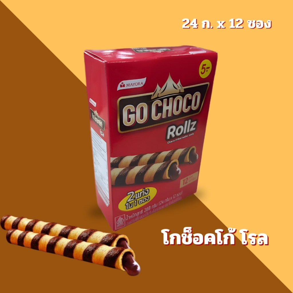 [1 แพ็ค] โกช็อคโก้ โรล เวเฟอร์สติ๊ก สอดไส้ครีม ช็อกโกแลต กล่อง x12 ชิ้น
