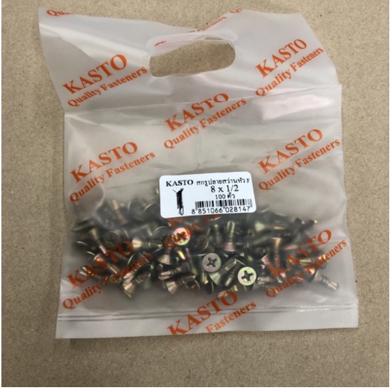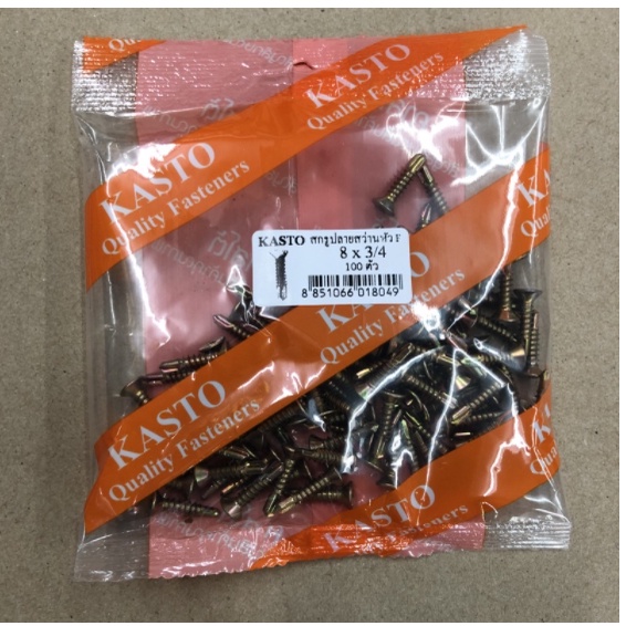 KASTO สกรูปลายสว่านหัว F เบอร์ 8 ( กล่อง ) เตเปอร์ ขนาดความยาวตั้งแต่ 1/2 นิ้ว ถึง 4 นิ้ว เจาะเหล็ก ไม่ต้องเจาะนำ