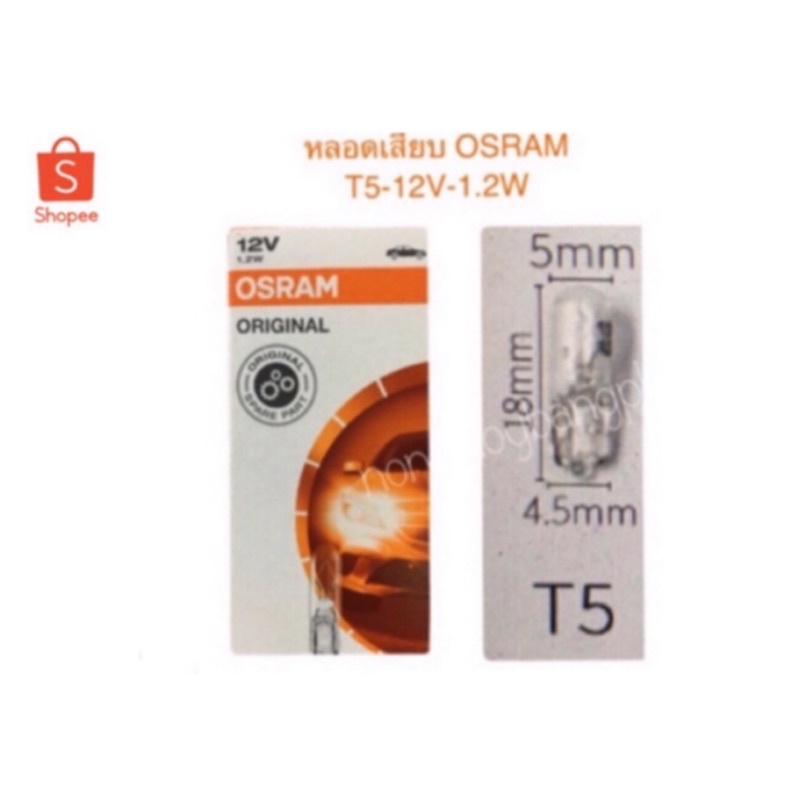 OSRAM หลอดไฟเสียบ T5-12V-1.2W สำหรับรถยนต์