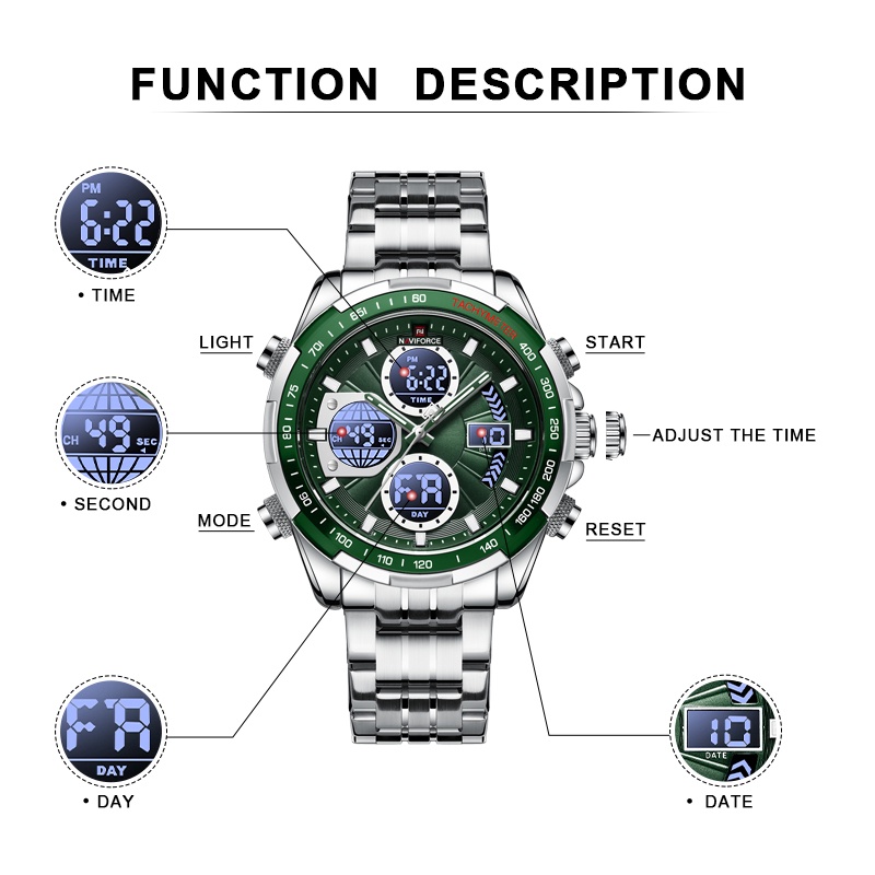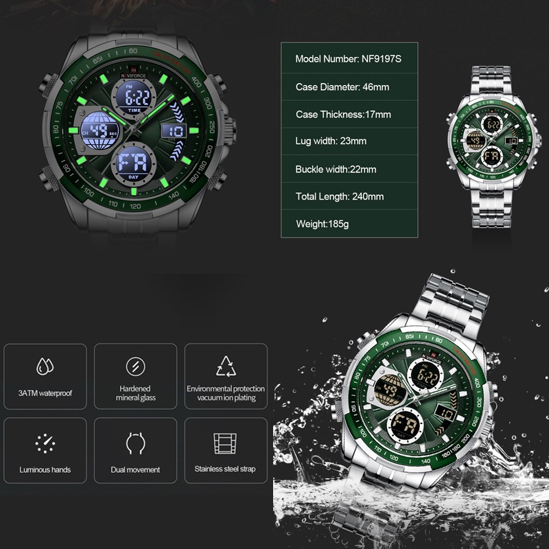 นาฬิกาข้อมือ NAVIFORCE สายสแตนเลส กันน้ํา สําหรับผู้ชาย