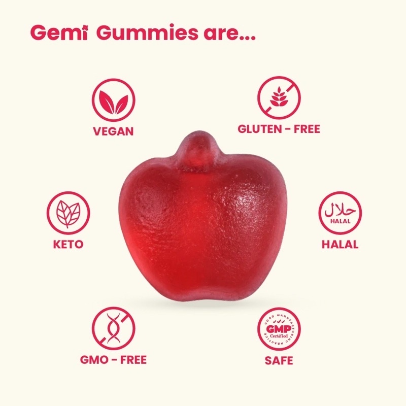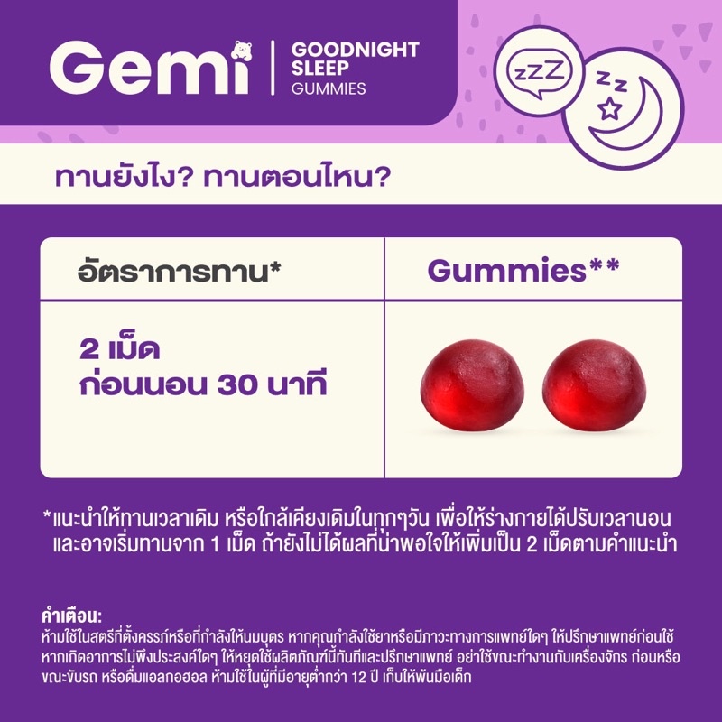 Gemi เจมมี่ แอปเปิ้ลไซเดอร์วิเนการ์และกู๊ดไนท์สลีพกัมมี่ รวม 2 กระปุก / Gemi ACV & Goodnight Sleep Gummy / GemiGummi