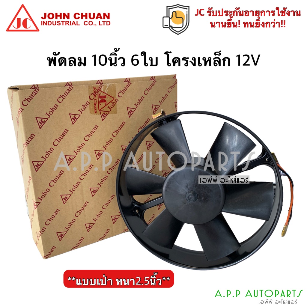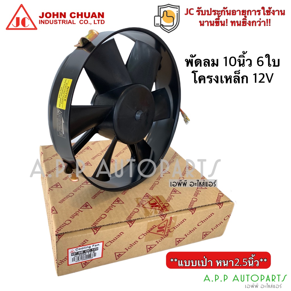 พัดลมเป่า แผงแอร์ JC 10นิ้ว 6ใบ 12V แบบเป่า พัดลมเสริมแอร์ (JohnChuan 2600-12BE) เป่าแผง พัดลมหม้อน้ำ หนา 2.5นิ้ว