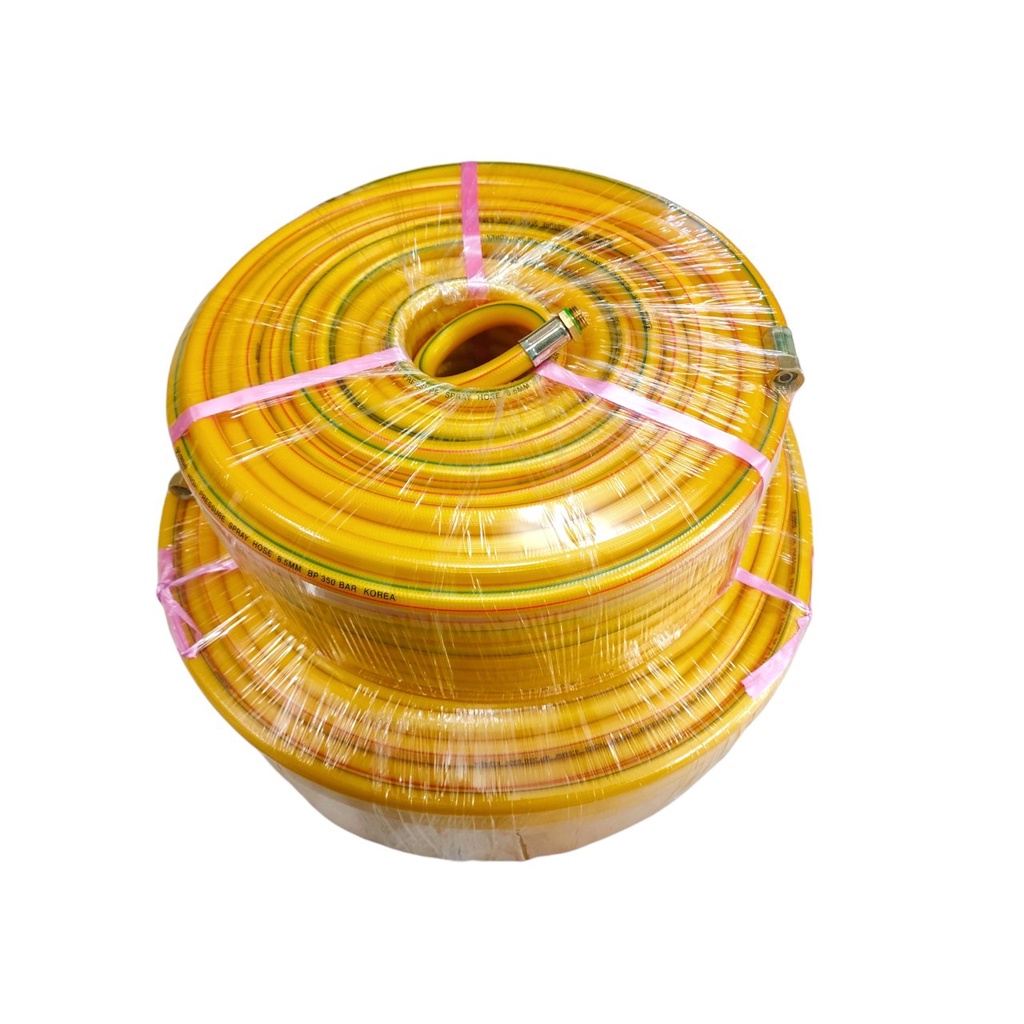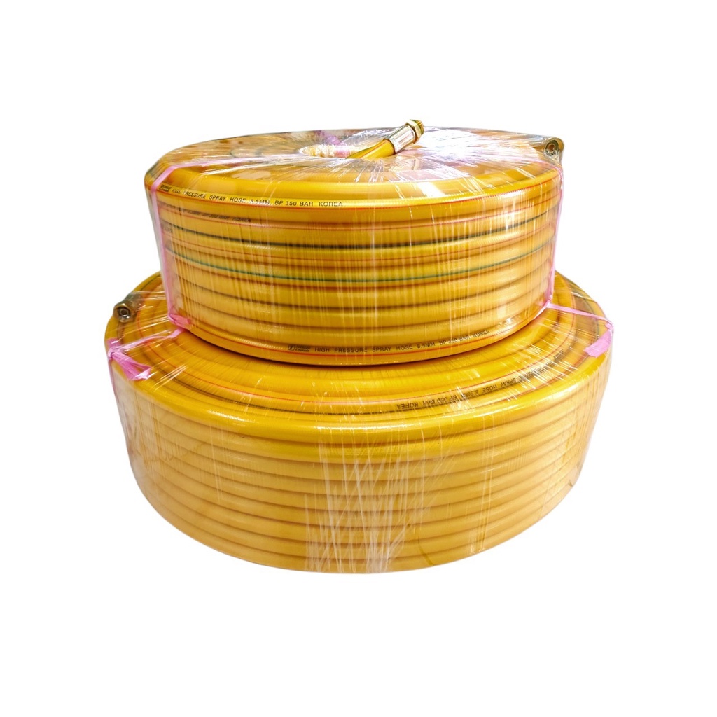 สายพ่นยา T-Tornado 7ชั้น (สีเหลือง) ทนแรงดันได้ 350 บาร์ พร้อมย้ำหัวทองเหลืองอย่างดี มาตราฐานเกาหลี ความยาว 50 / 100เมตร