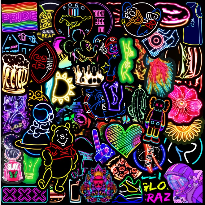 💥พร้อมส่ง💥BIG SALE!!!สติ๊กเกอร์แสงนีออน 50ชิ้น สําหรับตกแต่งกระเป๋าเดินทางแล็ปท็อปกีตาร์ neon lights ไฟนีออน football