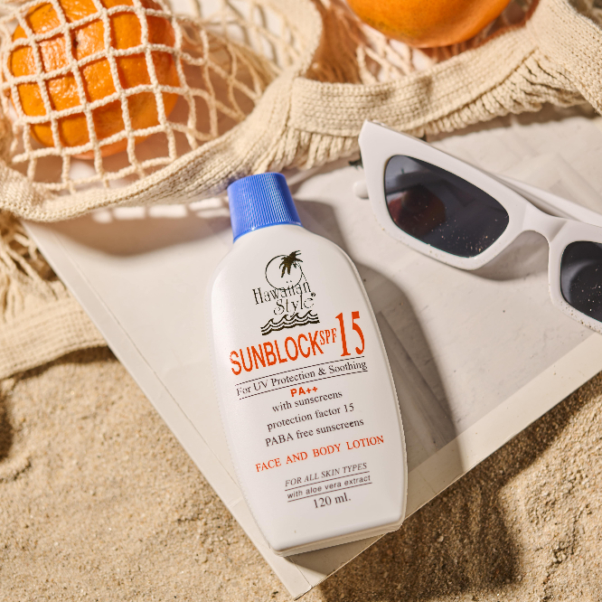 Hawaiian Style Sunblock SPF15 PA++ ครีมกันแดดฮาวายเอียนสไตล์ซันบล็อก เอสพีเอฟ15 กันแดดหน้าและตัว