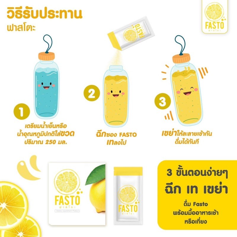 ซื้อ3แถม2!! FASTO Gold ฟาสโตะ โกล (ผลิตภัณฑ์เสริมอาหาร) ชงดื่มง่าย วิตามินซีสูง บรรจุ 15g.*7ซองน้ำมะนาว fasto ดื่มพร้อม