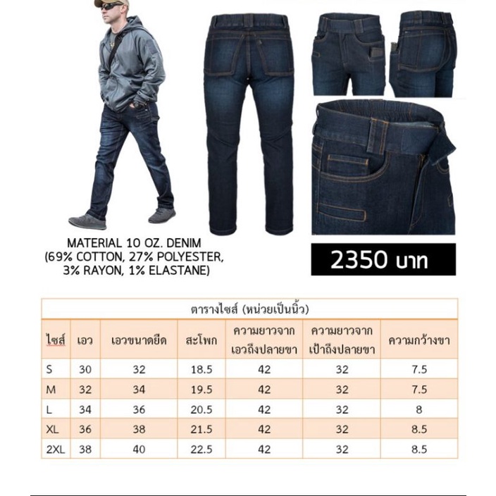 กางเกงยีนส์GREYMAN TACTICAL JEANS® SLIMสี DENIM MID จาก Helikon-tex