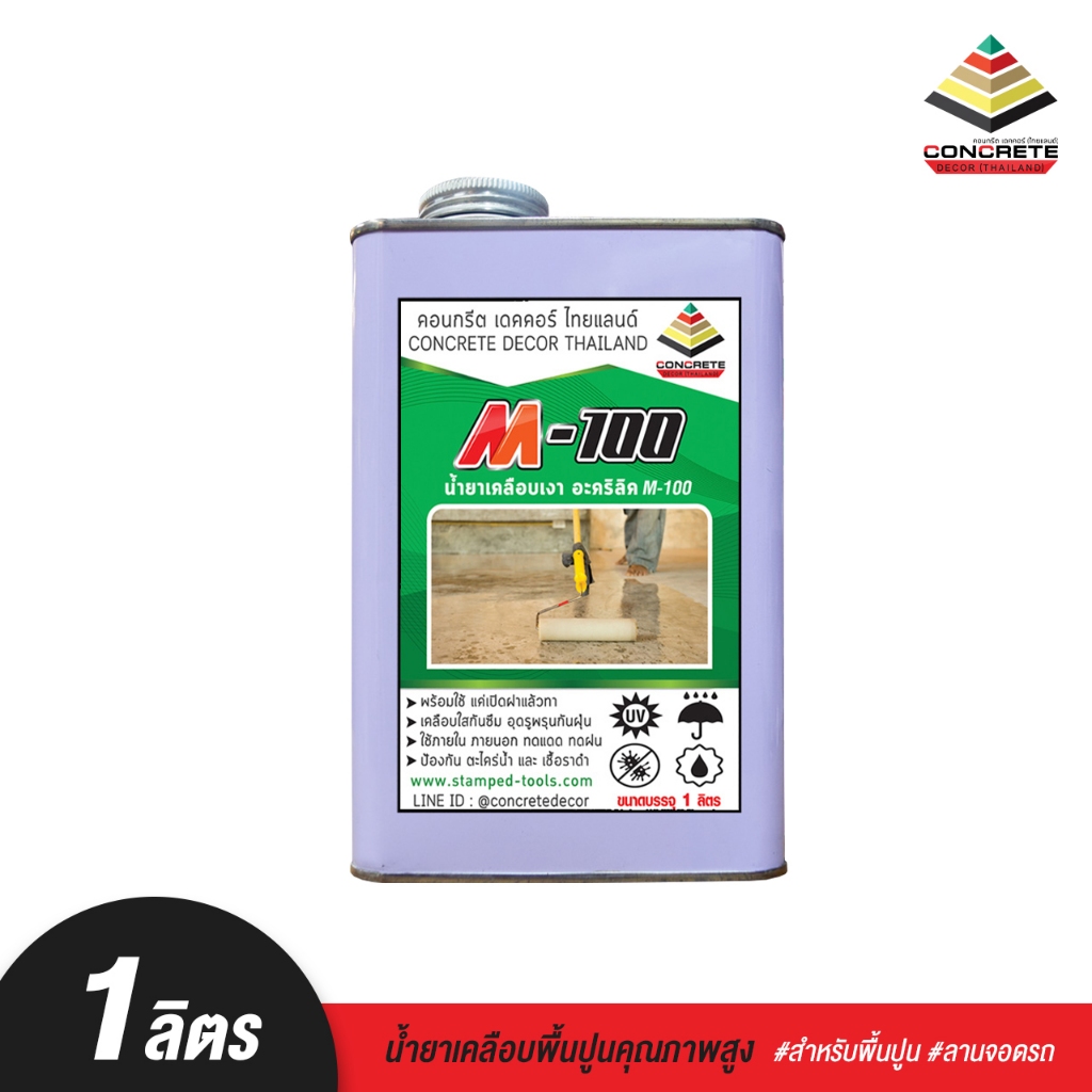 M-100 ขนาด 1 ลิตร อะคริลิคใส น้ำยาเคลือบเงาพื้นปูน ผนังปูน ป้องกัน ตะไคร่ เชื้อรา กันซึม กันฝุ่นปูน