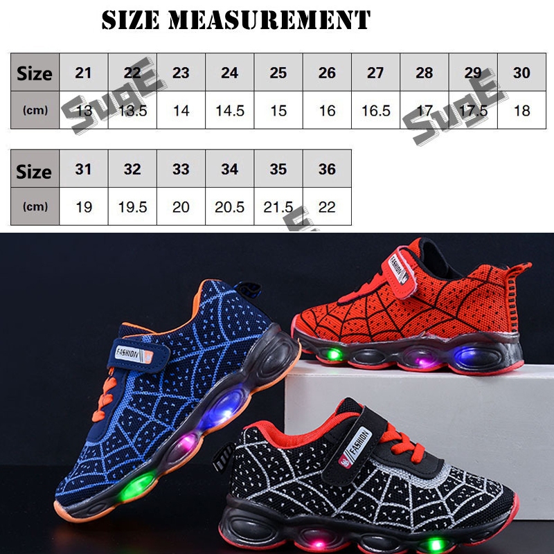 SUGE รองเท้าสไปเดอร์แมน LED กระพริบ รองเท้าผ้าใบเด็กผู้ชาย