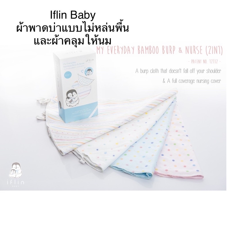 Iflin baby ผ้าพาดบ่าแบบไม่หล่นพื้น & ผ้าคลุมให้นมใยไผ่ (2in1)