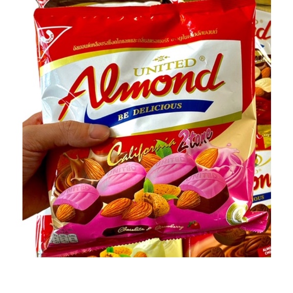 ยูไนเต็ดอัลมอนด์ อัลมอนด์เคลือบช็อกโกแลต มี 4 รส ถุงละ45 เม็ด แอลม่อน แอลมอน