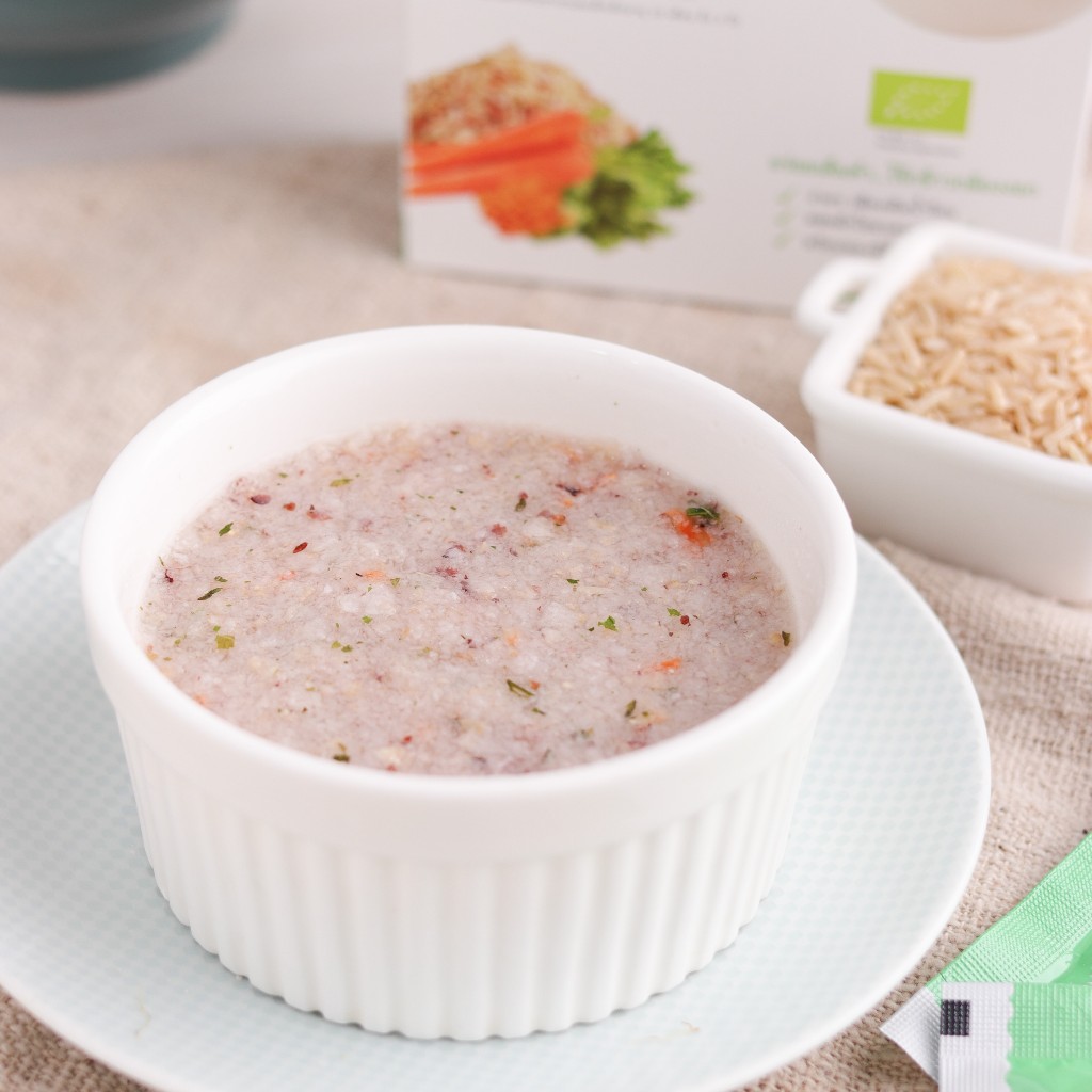อาหารเสริมเด็ก 10 เดือน ข้าวกล้องงอกออร์แกนิก ผสมผักโขมและแครอท (บรรจุ 5 ซอง) ซองเดอร์ เบบี้ Xongdur Baby [404-005]