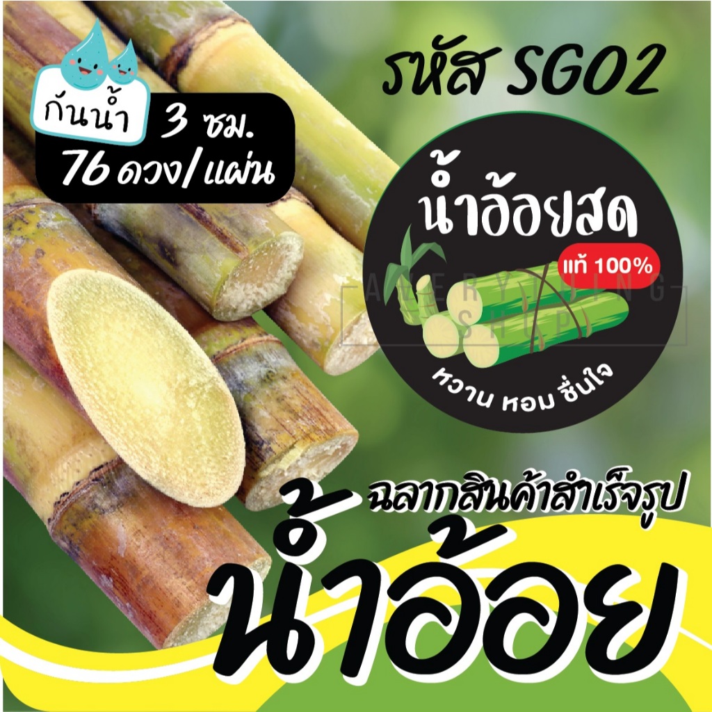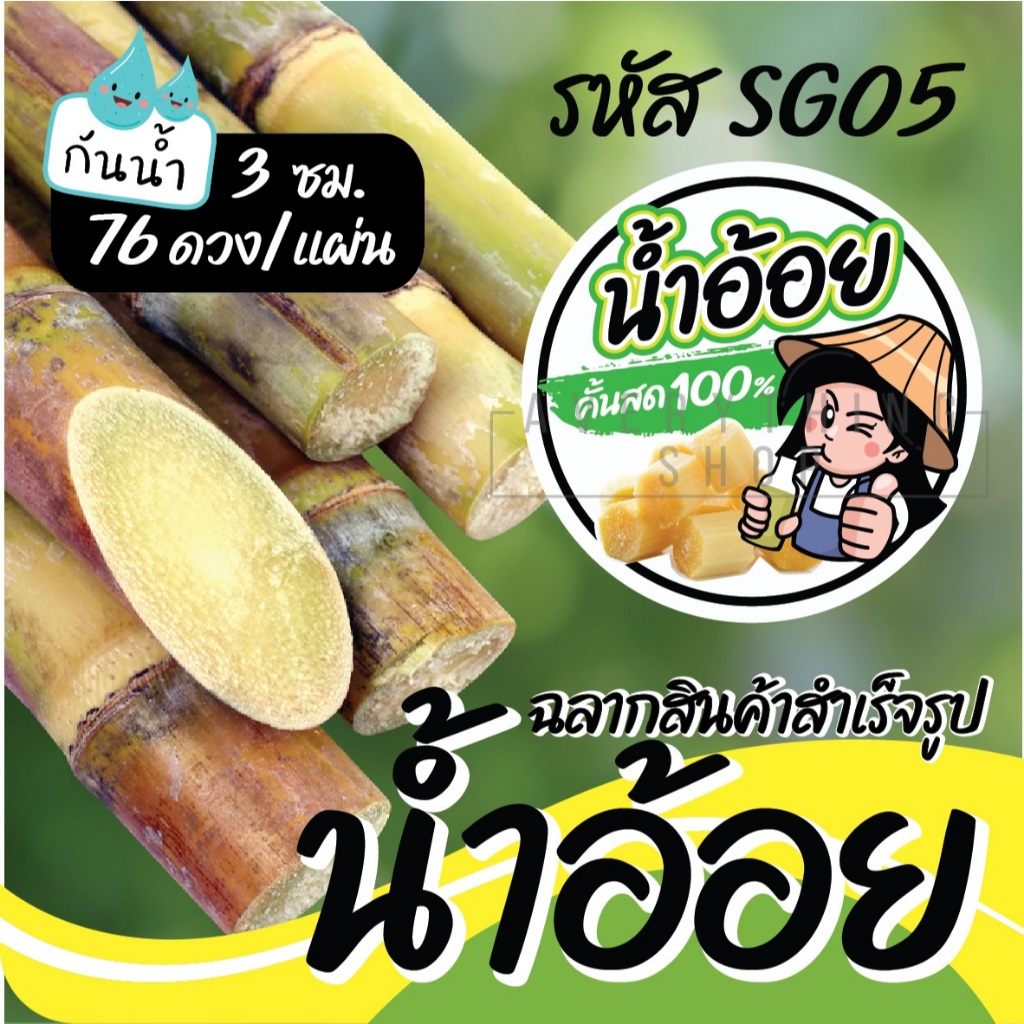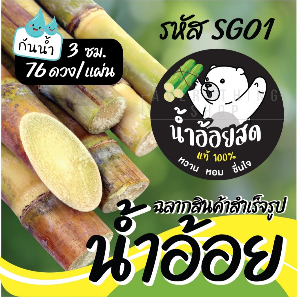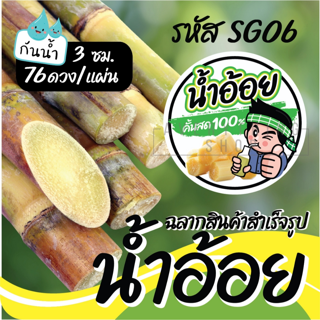 🥤 ฉลากสินค้าสำเร็จรูป 💧กันน้ำ 100% (ขนาด 3 ซม. ได้ 76 ดวงต่อแผ่น) น้ำอ้อย น้ำอ้อยคั้น น้ำอ้อยคั้นสด