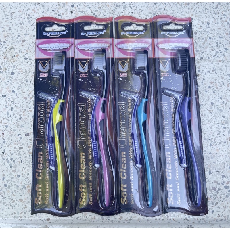 แปรงจัดฟัน แถมฟรี แปรงซอกฟัน รุ่นชาร์โคล Dr.Phillips ลอต Limited edition ฟรีกล่องใส่แปรง คละสี