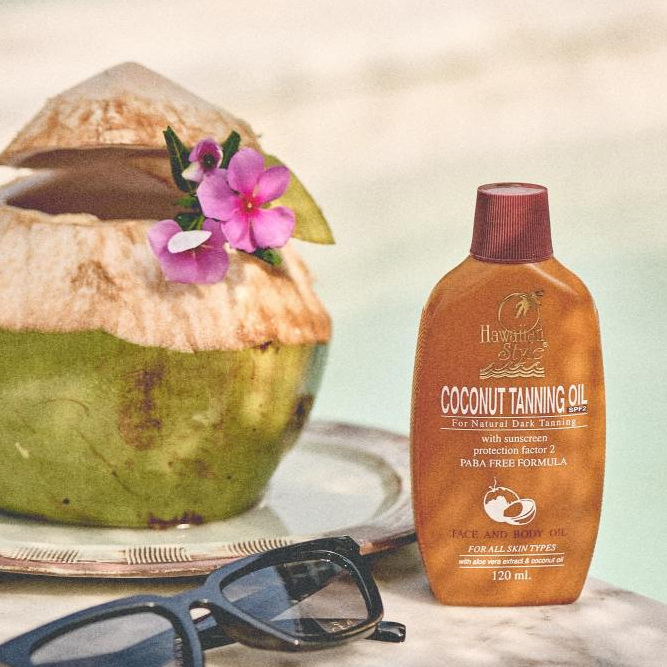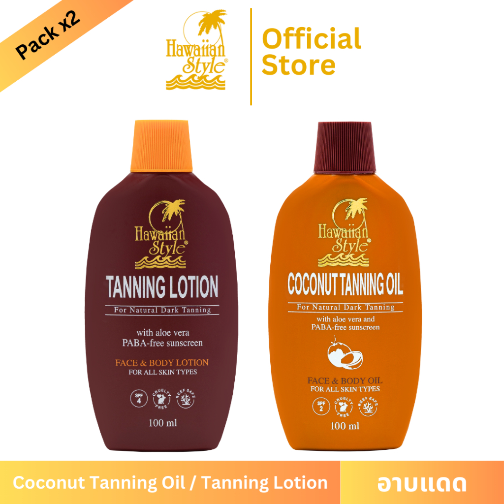 Hawaiian Style Tanning Lotion SPF4 & Coconut Tanning Oil SPF2 โลชั่นและน้ำมันมะพร้าวทาอาบแดดผิวแทน