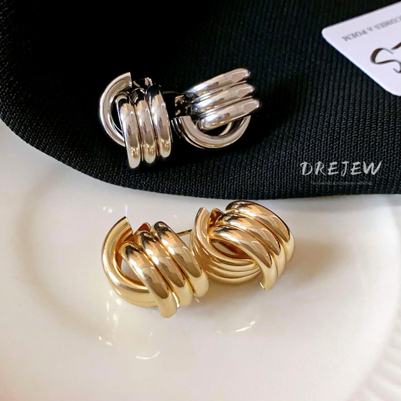DREJEW ต่างหูเข็มเงิน รูปทรงเรขาคณิต เรียบง่าย เท่ สไตล์แฟชั่น