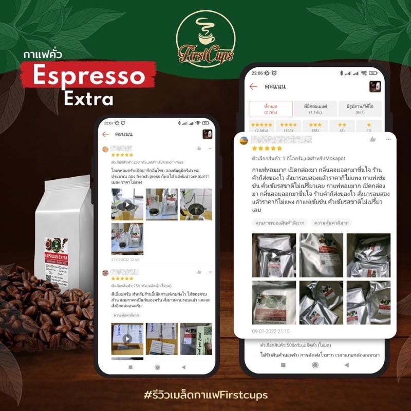 กาแฟคั่ว Espresso Extra สีแดง กาแฟสูตรเบลนอราบิก้าจากเชียงรายกับโรบัสต้า หอมเข้ม สู้นม