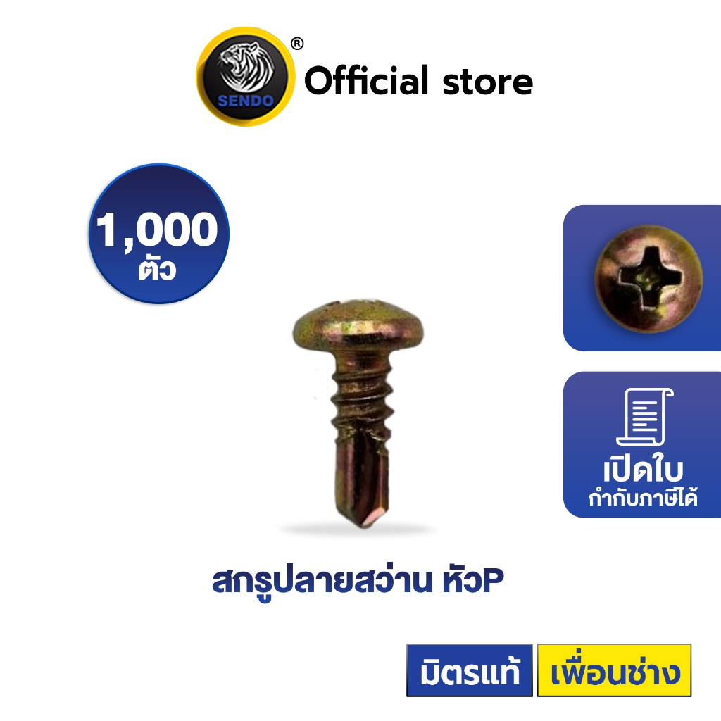 (ส่งไวทันใจ) (1000ตัว)Sendo สกรูปลายสว่าน หัวนูน หัวP สกรูยิงแป เจาะคม เจาะไว