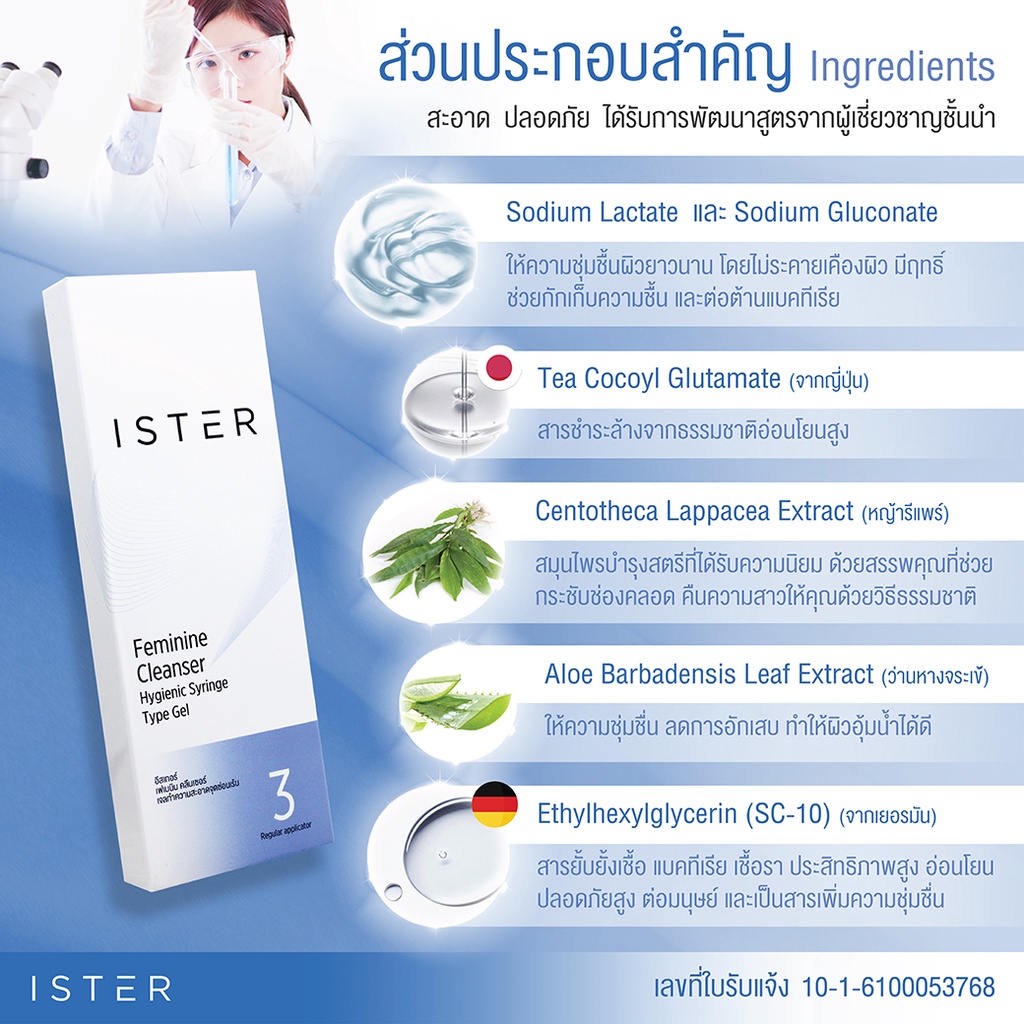 ส่งด่วน!! ister กล่อง ฟรี 3 หลอด ผลิตภัณฑ์ทำความสะอาดจุดซ่อนเร้นจากภายใน แก้ปัญหาตกขาวมีกลิ่น ลดอาการคัน กลิ่นอับชื้น