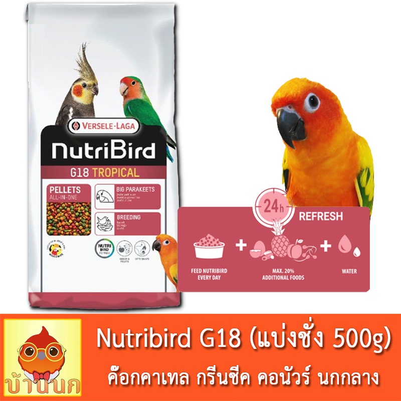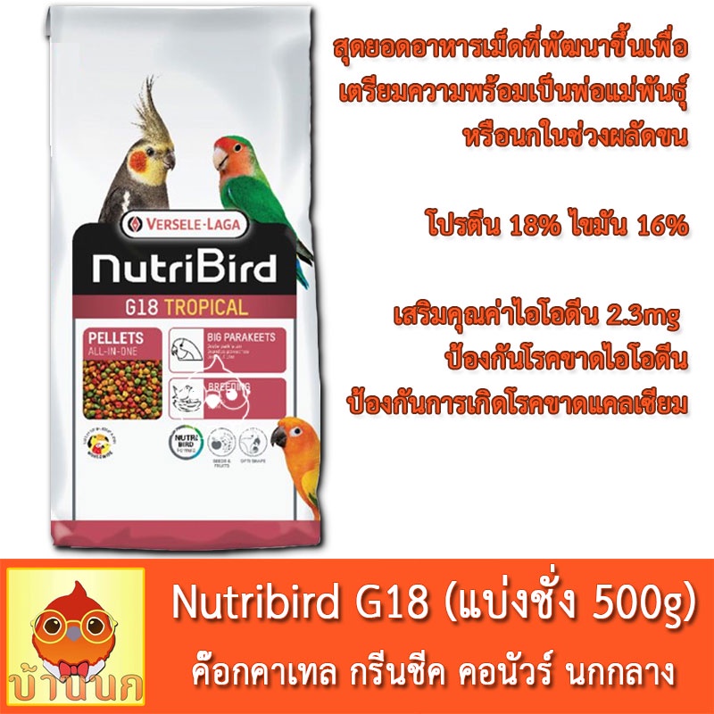 Versele-Laga Nutribird G18 Tropical แบ่งชั่ง 500g อาหารนก นกแก้ว ค๊อกคาเทล กรีนชีค คอนัวร์ นกกลาง พ่อแม่พันธุ์ นกผลัดขน