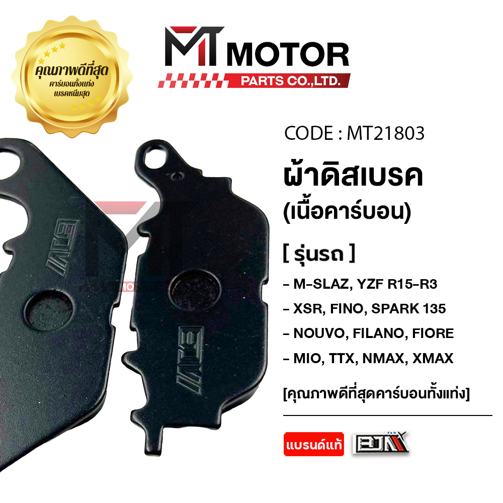 (MT21803) ผ้าดิสเบรค หลัง-หน้า MSLAZ,R15-R3,XSR,FINO,SPARK135,NOUVO,FILANO,FIORE,MIO,TTX,N-MAX,XMAX