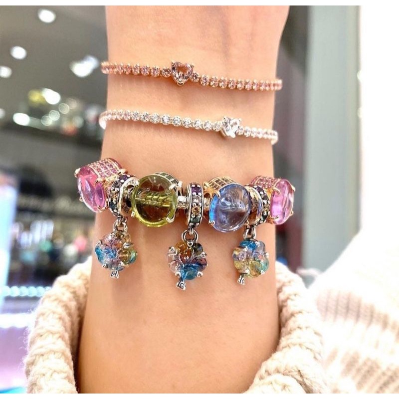 (ของแท้100%)❣️แถมกล่องถุง Pandora Sparkling Heart Tennis Bracelet ข้อมือเพชรหัวใจ