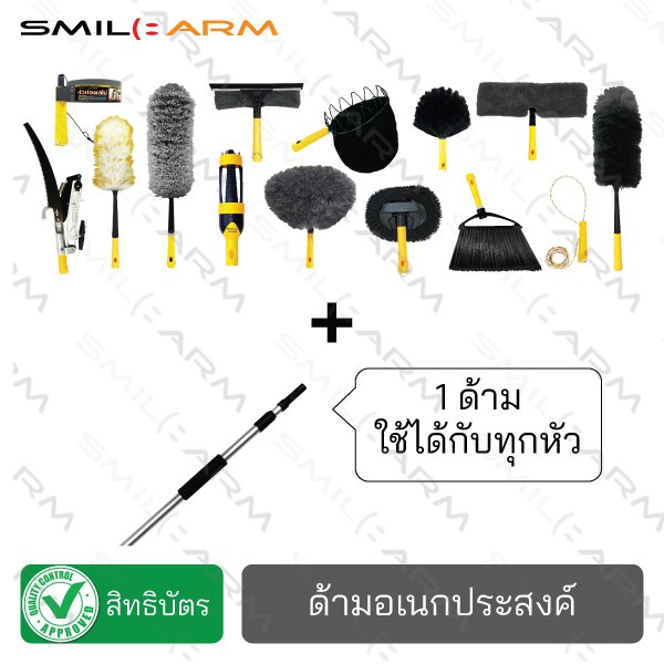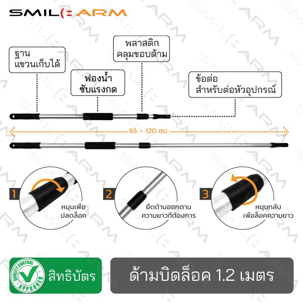 SmileArm® ด้ามบิดล็อค1.2ม. อลูมิเนียมแท้100% ใช้คู่กับหัวอุปกรณ์ ด้ามอเนกประสงค์ ยืดหดได้ ไม่เป็นสนิม มีประกันส่งซ่อมได้