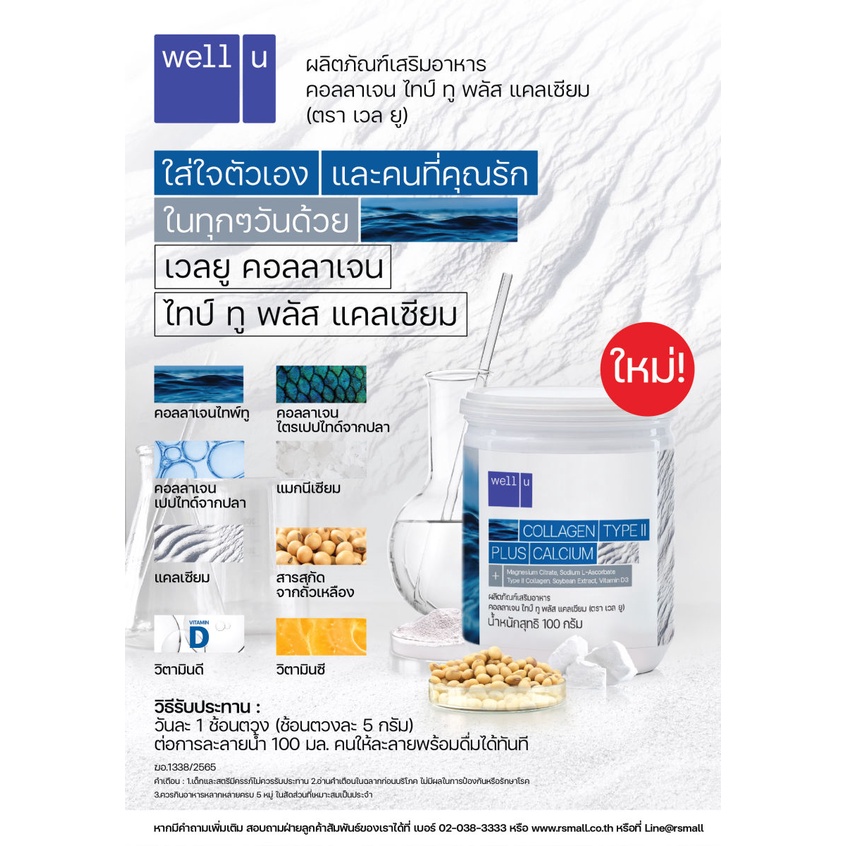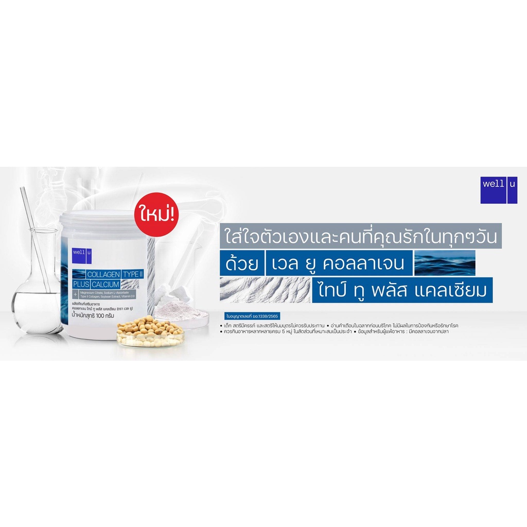 [2 กระป๋อง] Well U Collagen Type II Plus Calcium เวลยู คอลลาเจน ไทป์ทู พลัส แคลเซียม [100 g.]