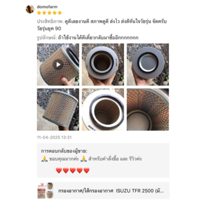 กรองอากาศ/ไส้กรองอากาศ ISUZU TFR 2500 (มังกรทอง)