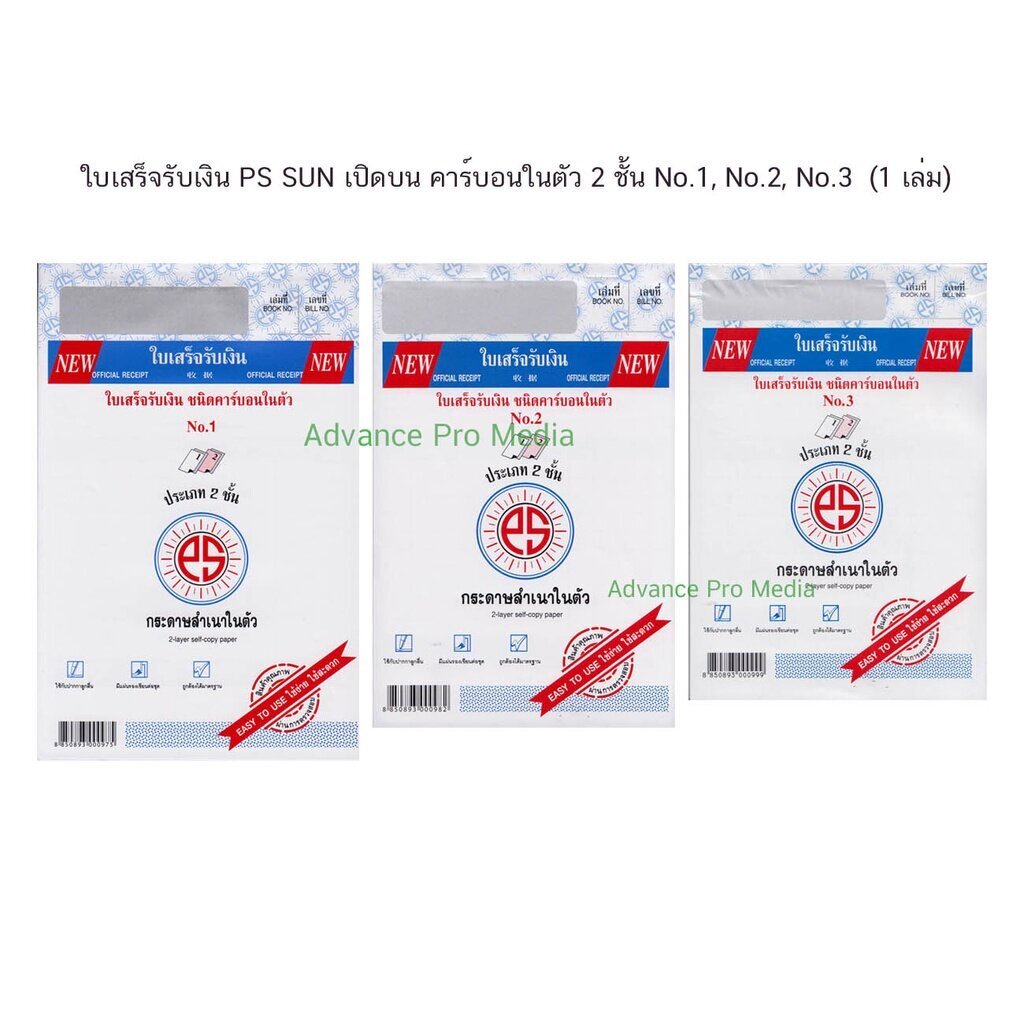 ใบเสร็จรับเงิน PS SUN เปิดบน คาร์บอนในตัว 2 ชั้น No.1, No.2, No.3 (1 เล่ม)