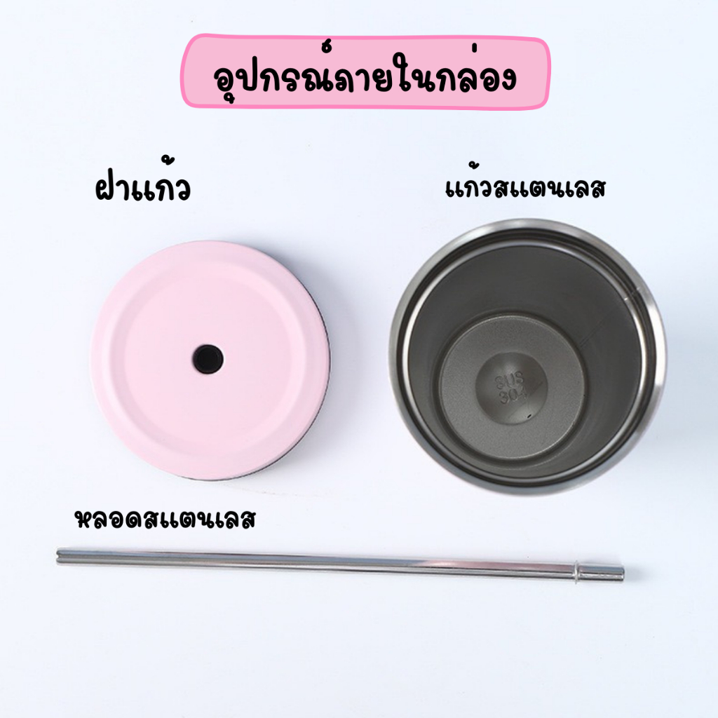 แก้วสแตนเลสทรงสูง แก้วเก็บความเย็น 25 ออนซ์ (750 ml.) พร้อมหลอด แก้วเก็บอุณหภูมิ