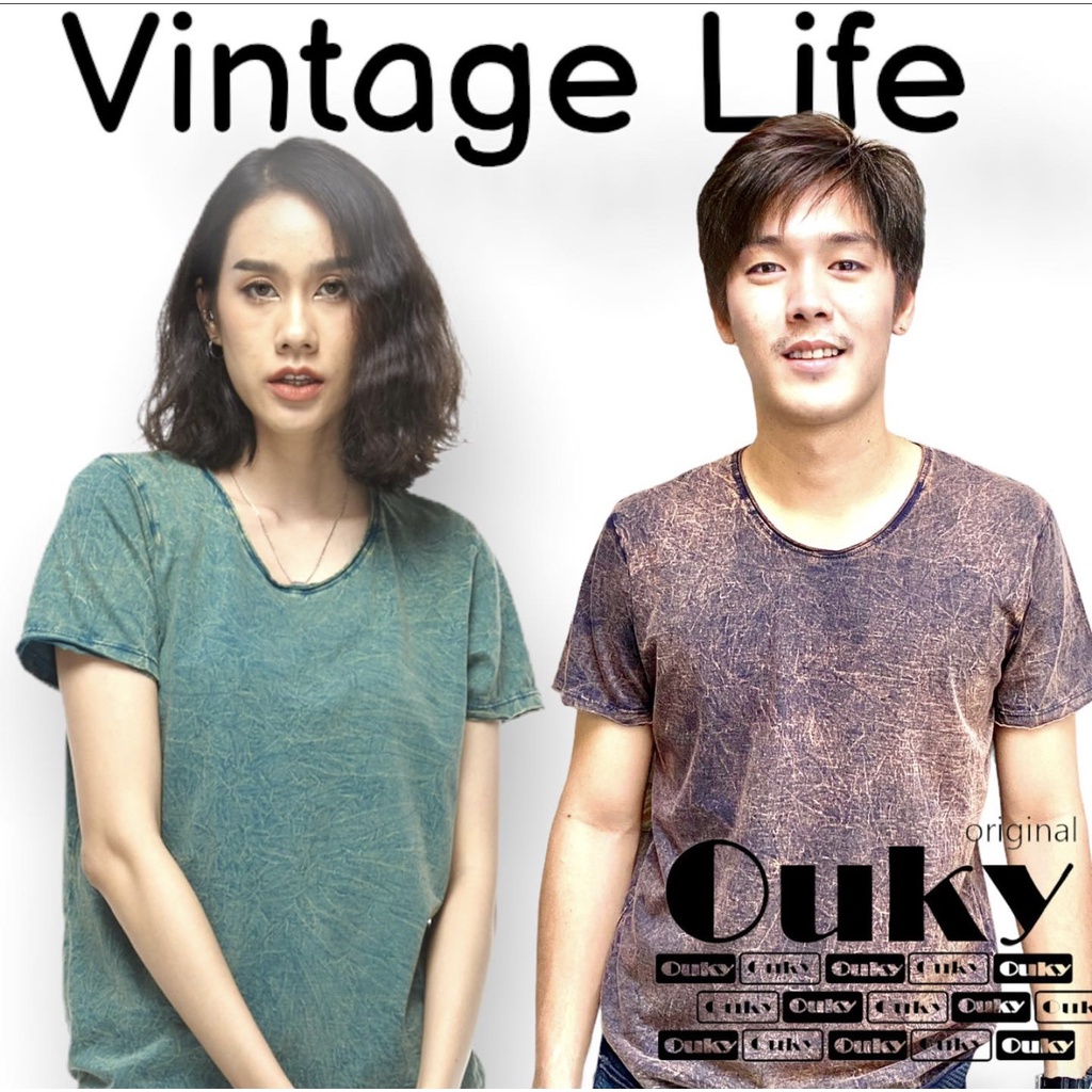 Ouky เสื้อฟอกยืดแนววินเทจ (มีไซส์ให้เลือก)