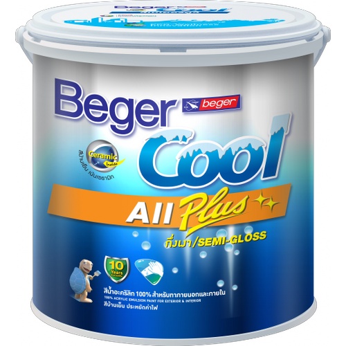 Beger สีครีม คูลออลพลัส กึ่งเงา (ขนาด 9L) สีทาบ้าน สีบ้านเย็น สีเบเยอร์ เกรด 10ปี เช็ดล้างทำความสะอาดได้ สะท้อนควาร้อน